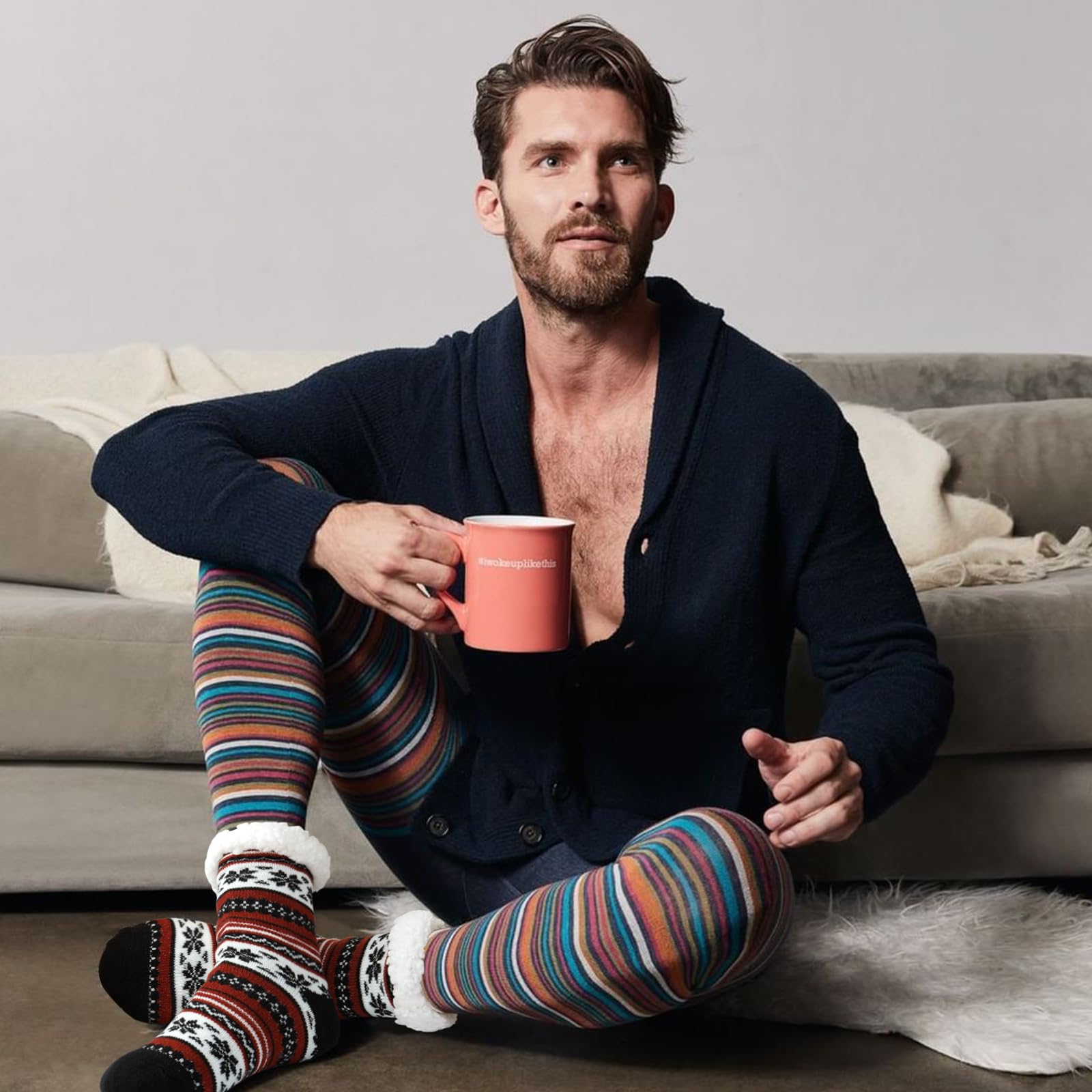 Junely Slipper Socks for Men with Grippers Fuzzy Cozy Fluffy Non Slip Warm Winter Thick Comfy Soft Fleece Cabin Socks Christmas Gifts Snowflake Black