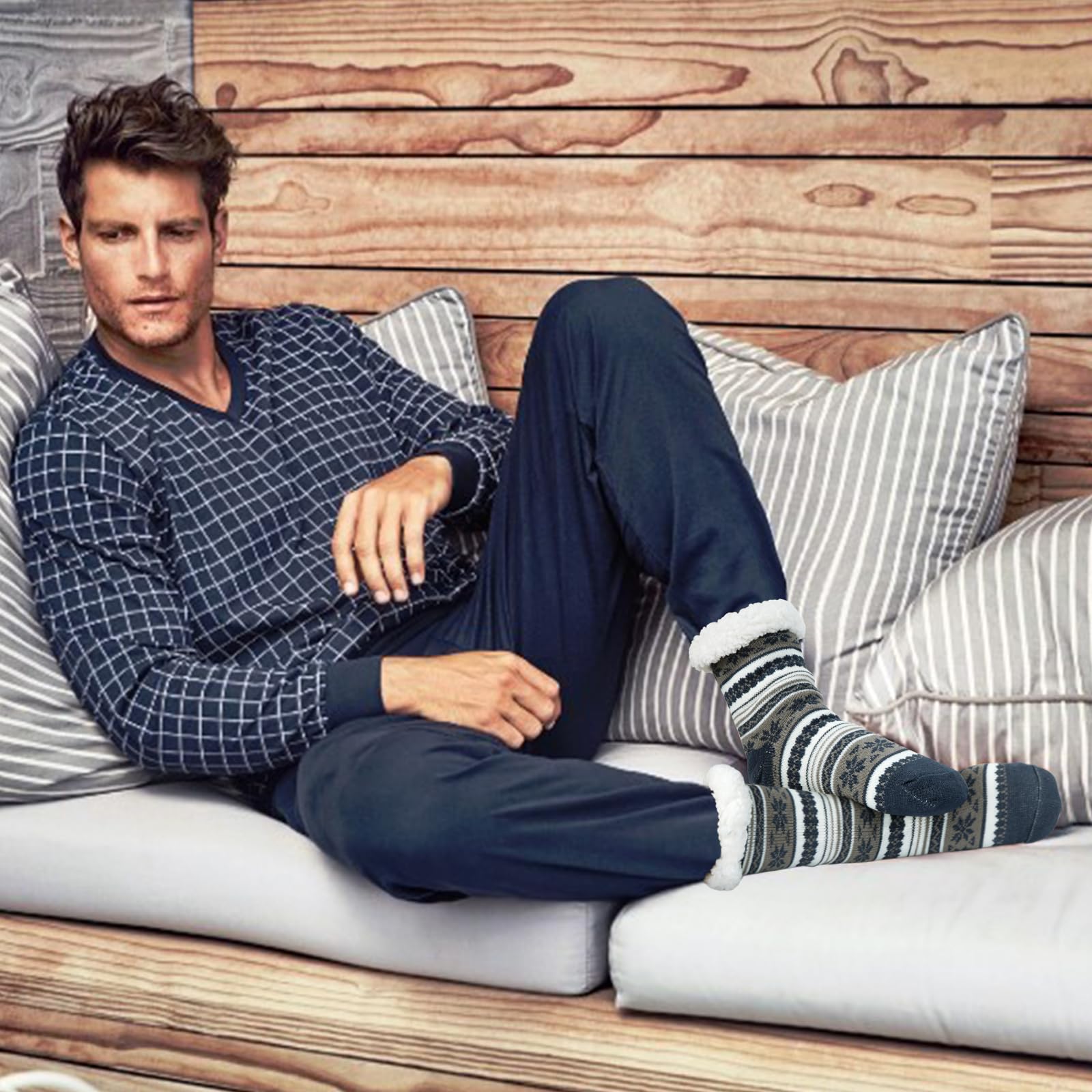 Junely Slipper Socks for Men with Grippers Fuzzy Cozy Fluffy Non Slip Warm Winter Thick Comfy Soft Fleece Cabin Socks Christmas Gifts Snowflake Blue