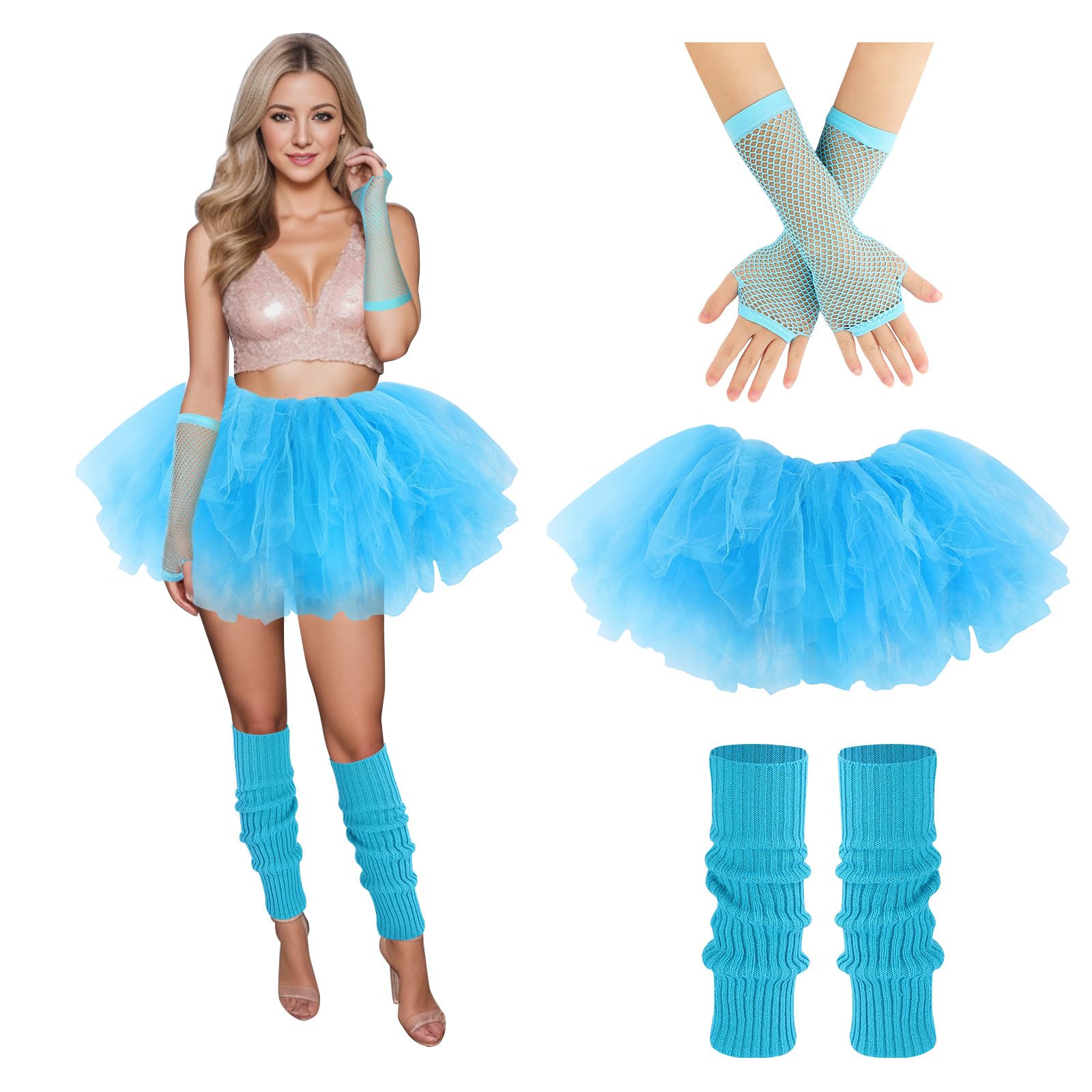 Junely Tutu for Women Adults and Leg Warmers and Fingerless Gloves Costume Accessories for Halloween Ballet Dance Running Gifts Blue