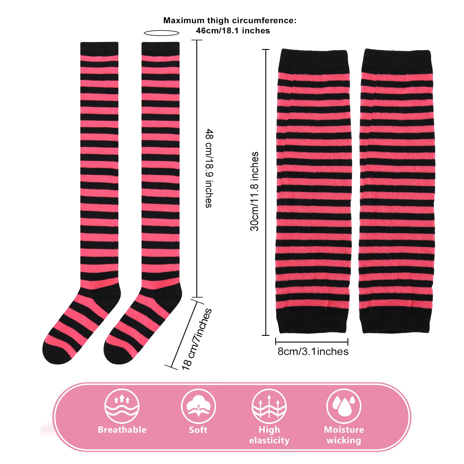 Junely Tutu for Women Adults Striped Thigh High Socks Fingerless Gloves Halloween Costumes Accessories Pink Black