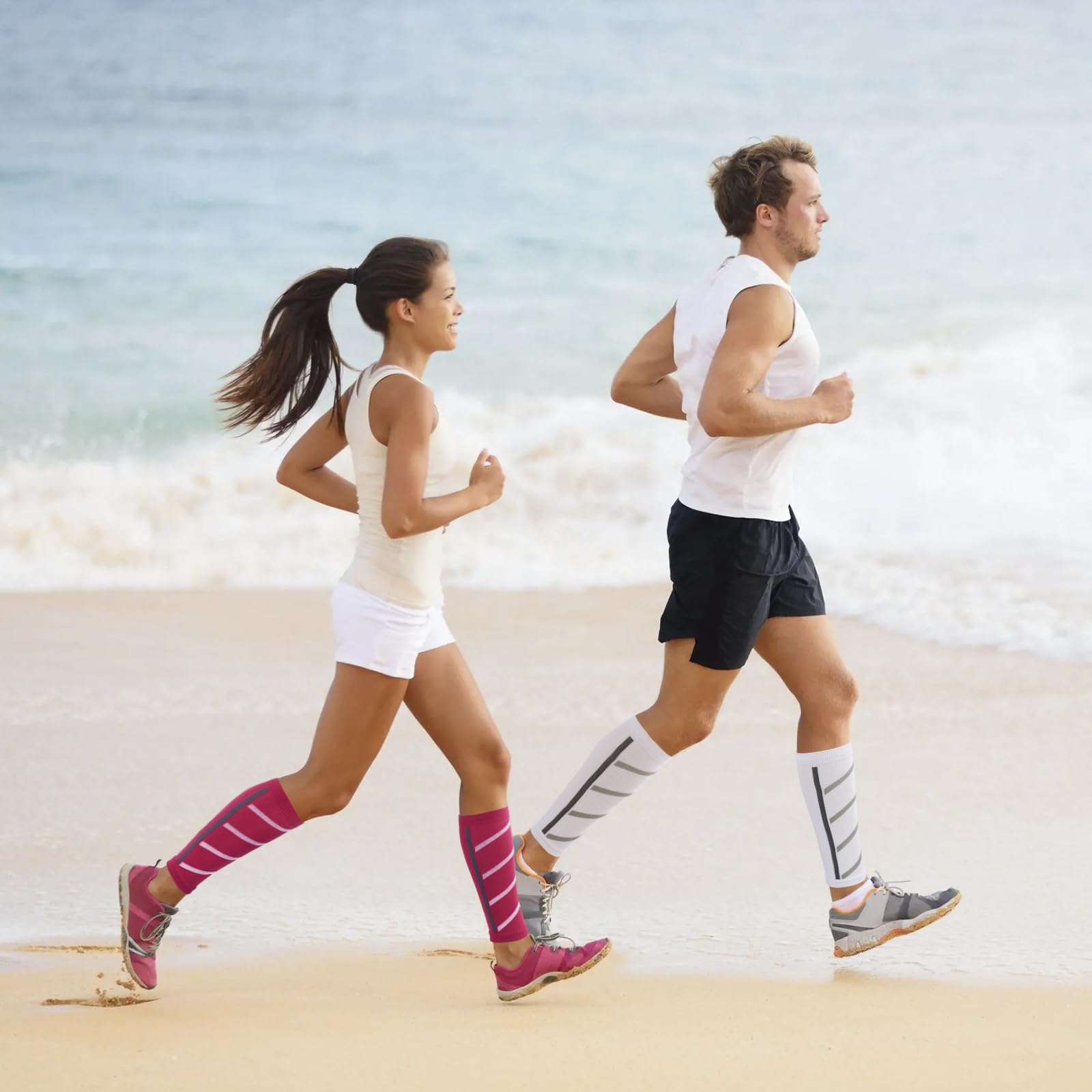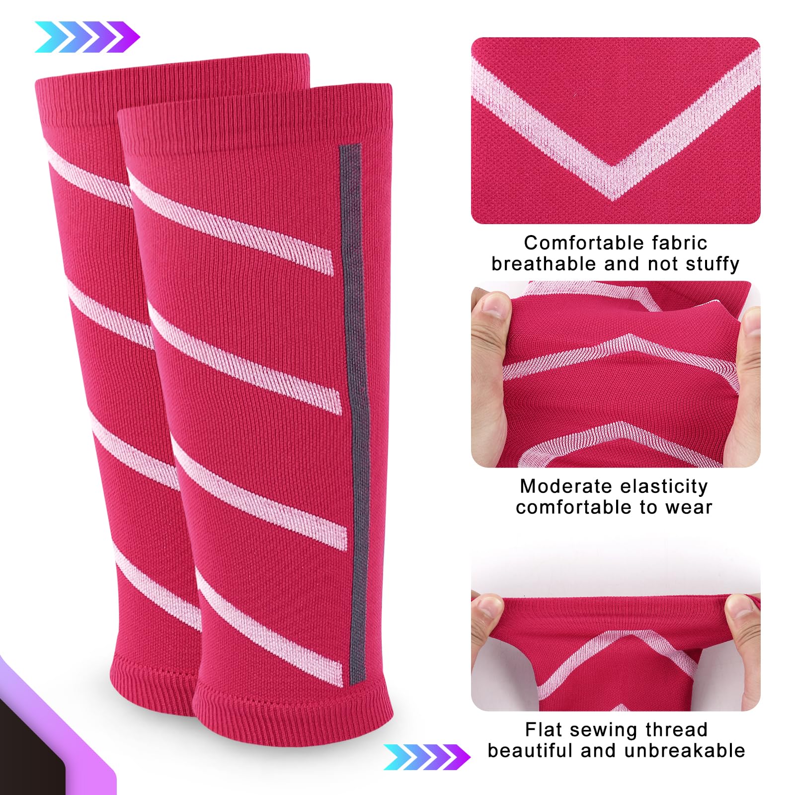 Junely 3 Pairs Calf Compression Sleeve for Men and Women Leg Compression Sleeve for Support Sports Running Cycling White Red Yellow