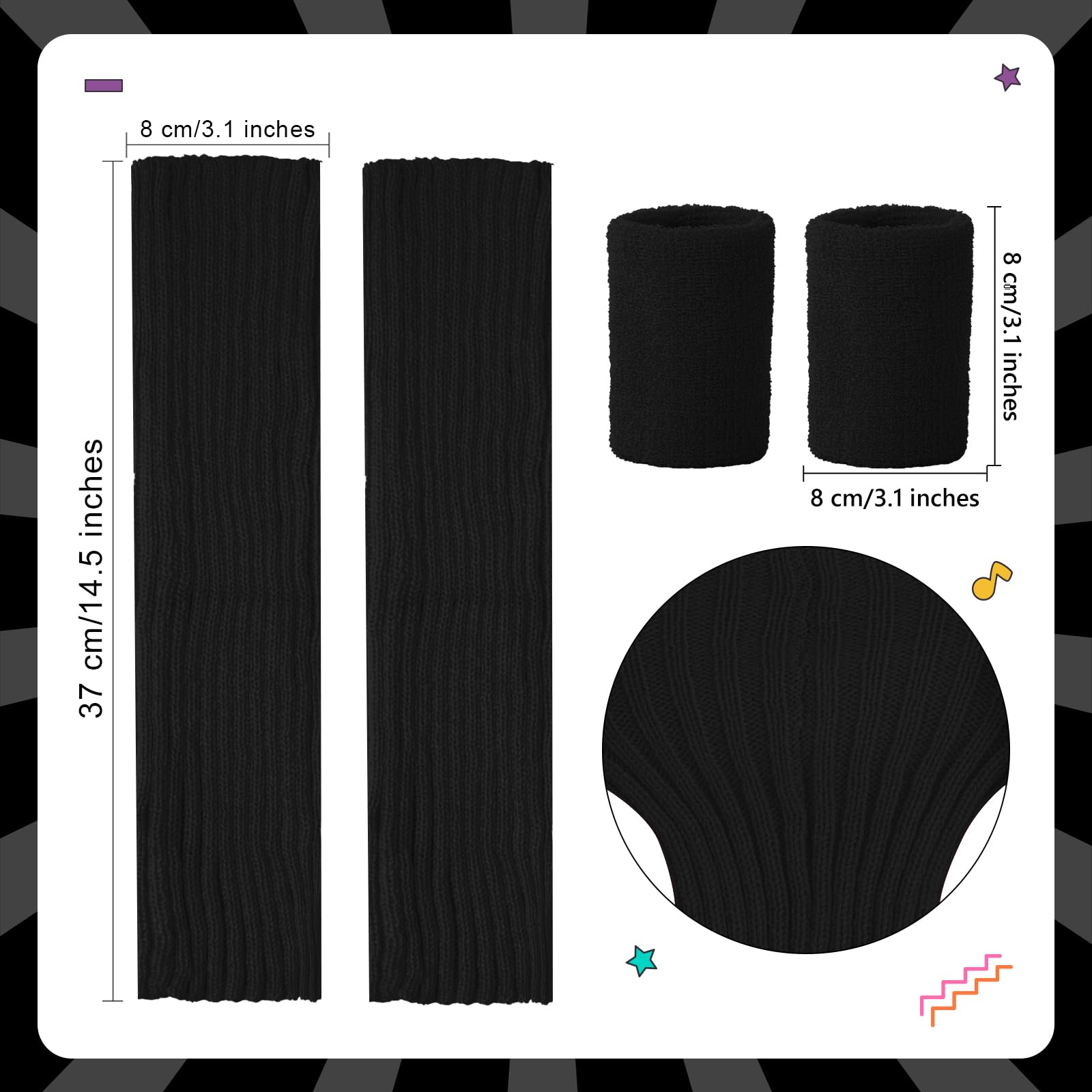 Junely 80s Accessories for Women Neon Leg Warmers Headband and Wristbands Set Knit Legwarmers for Ballet Dance Figure Skating Ice Skating Boot Black