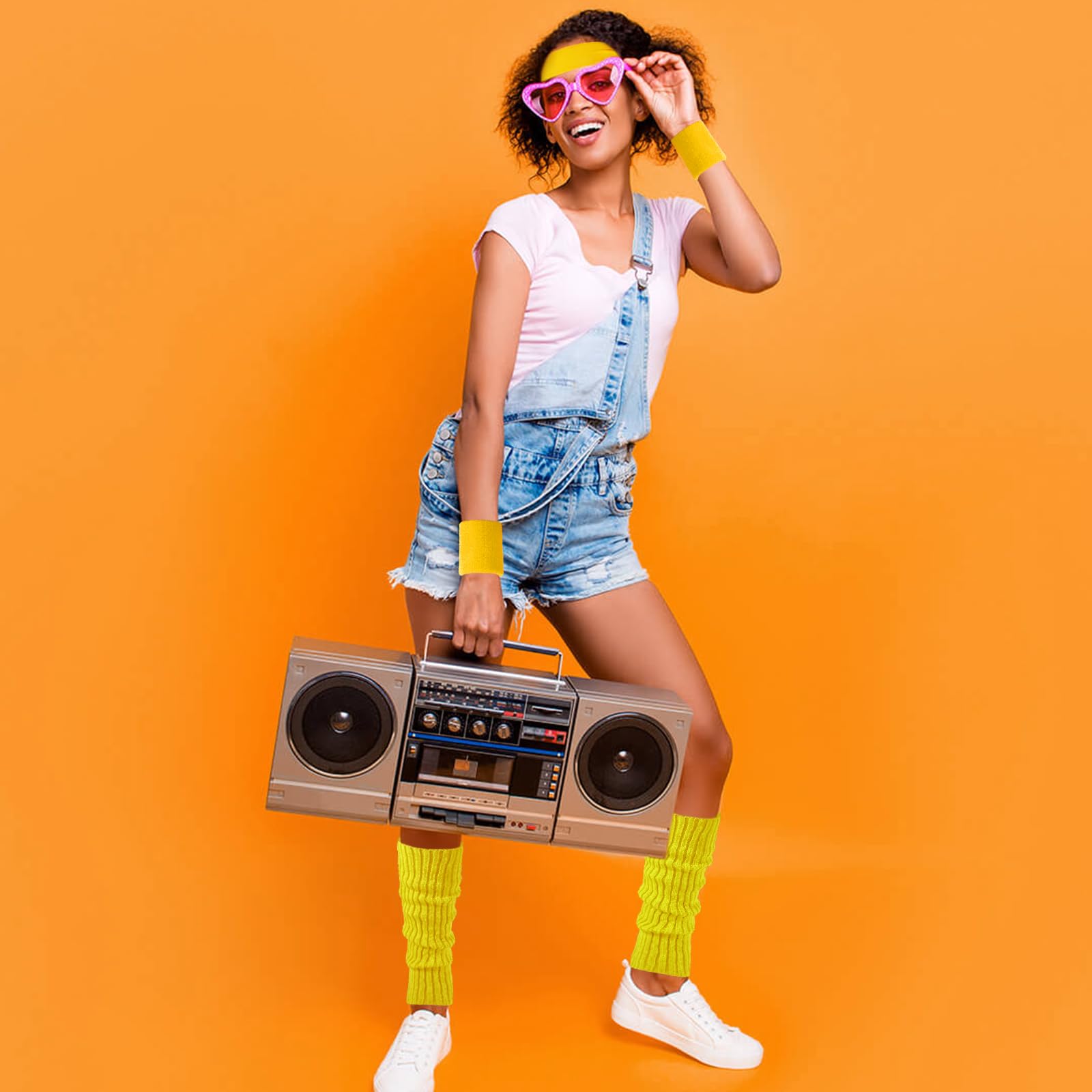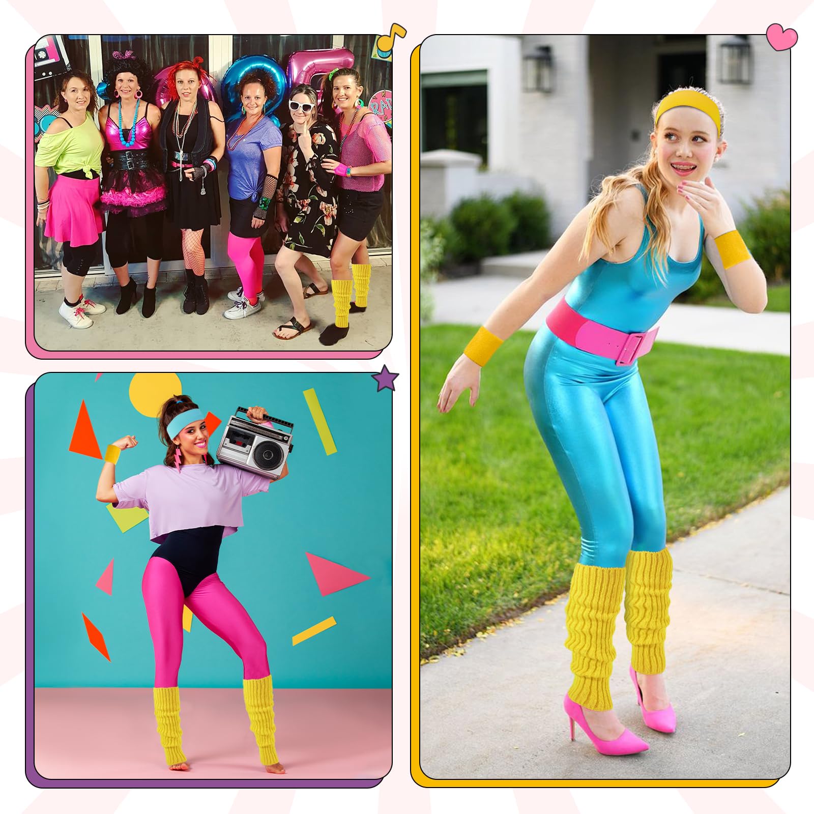 Junely 80s Accessories for Women Neon Leg Warmers Headband and Wristbands Set Knit Legwarmers for Ballet Dance Figure Skating Ice Skating Boot Yellow