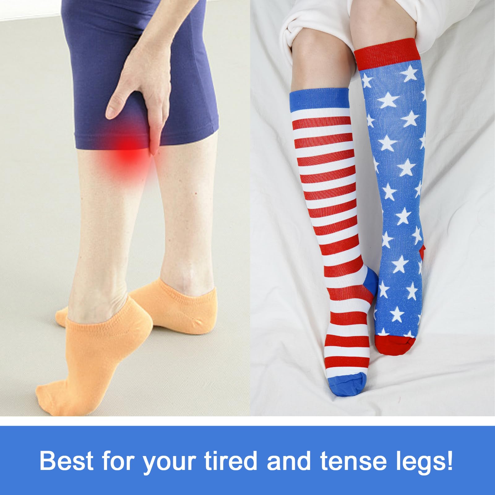 Junely American Flag Compression Socks for Women 20-30 mmhg Patriotic Knee High Socks for 4th of July Running Athletic Nurses Pregnant Women Work Support Travel Flight Sports Gifts Red White Blue