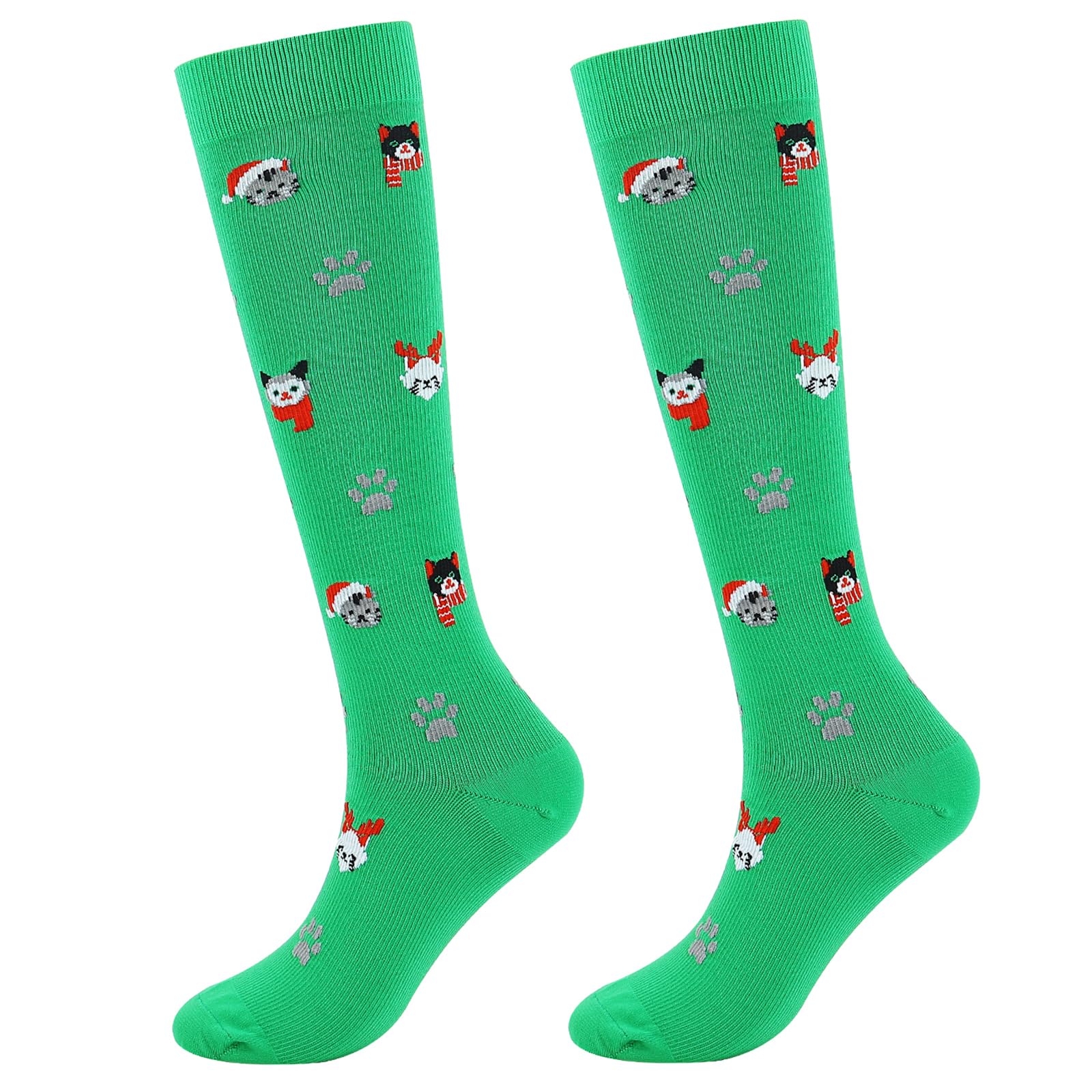 Junely Christmas Compression Socks for Women Knee High Christmas Cat Socks for Running Athletic Nurses Pregnant Women Work Support Travel Flight Sports Gifts Green