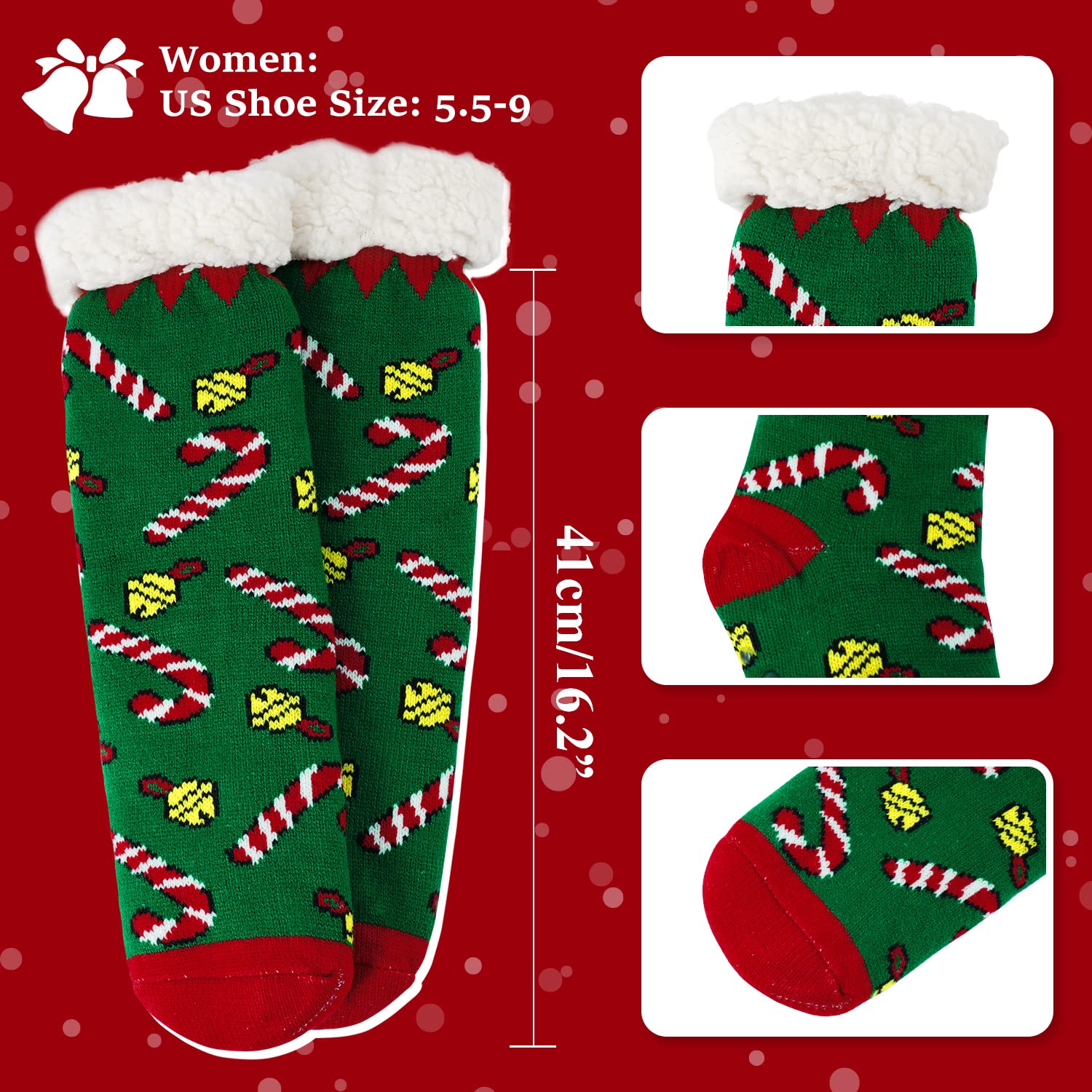 Junely Christmas Slipper Socks for Women with Grippers Non Slip Fuzzy Grip Winter Warm Cozy Thick Comfy Soft Fleece Cabin Socks Green