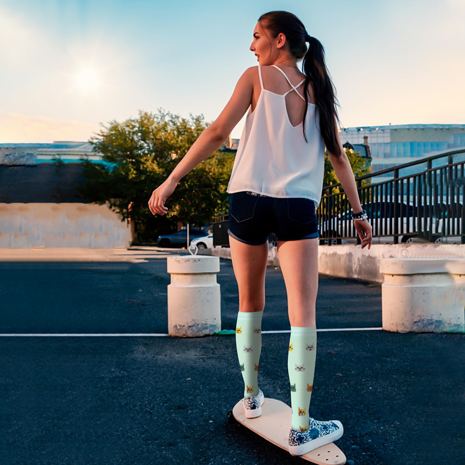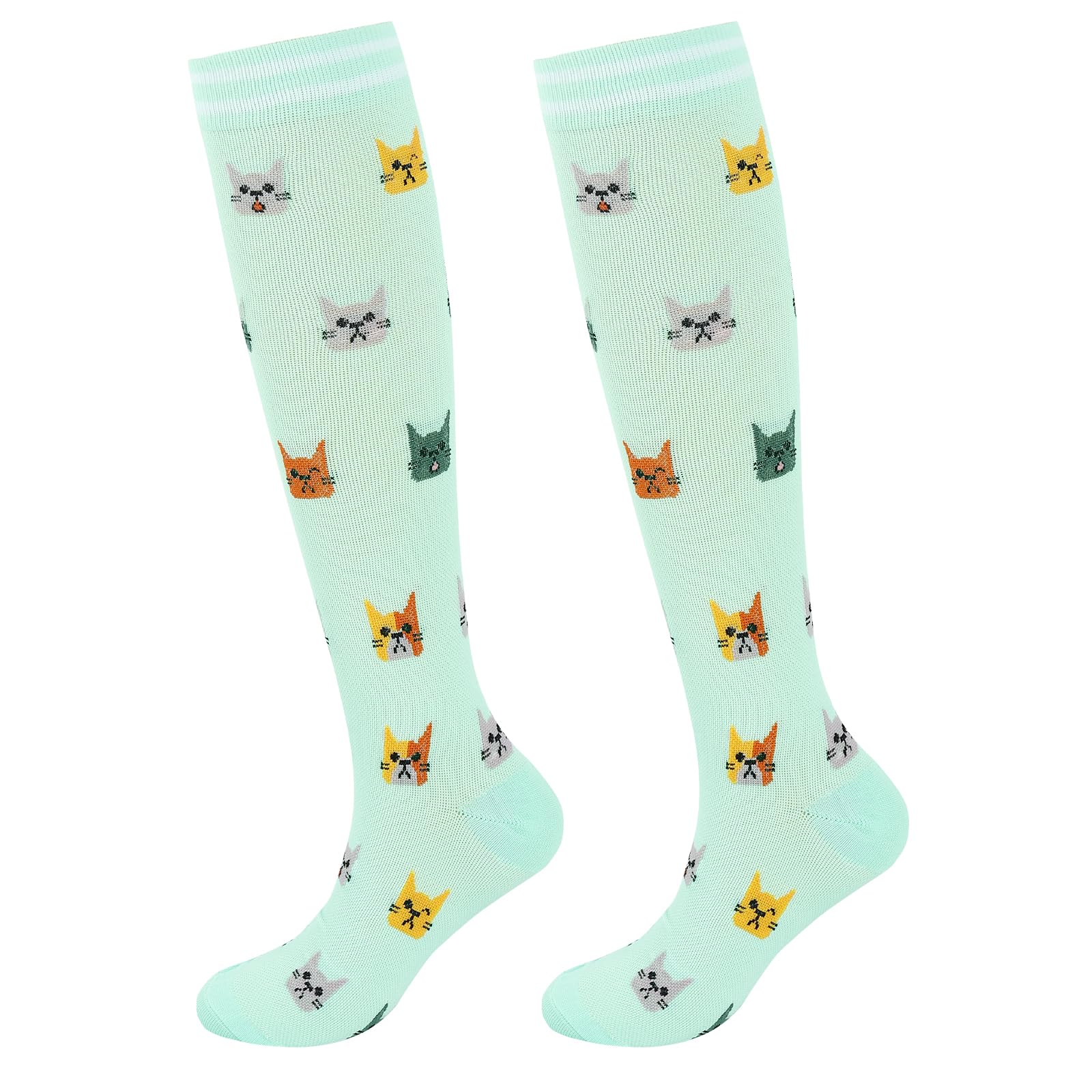Junely Compression Socks for Women 20-30 mmhg Cat Knee High Stockings for Running Athletic Nurses Pregnant Women Work Support Travel Flight Sports Cat Gifts Blue