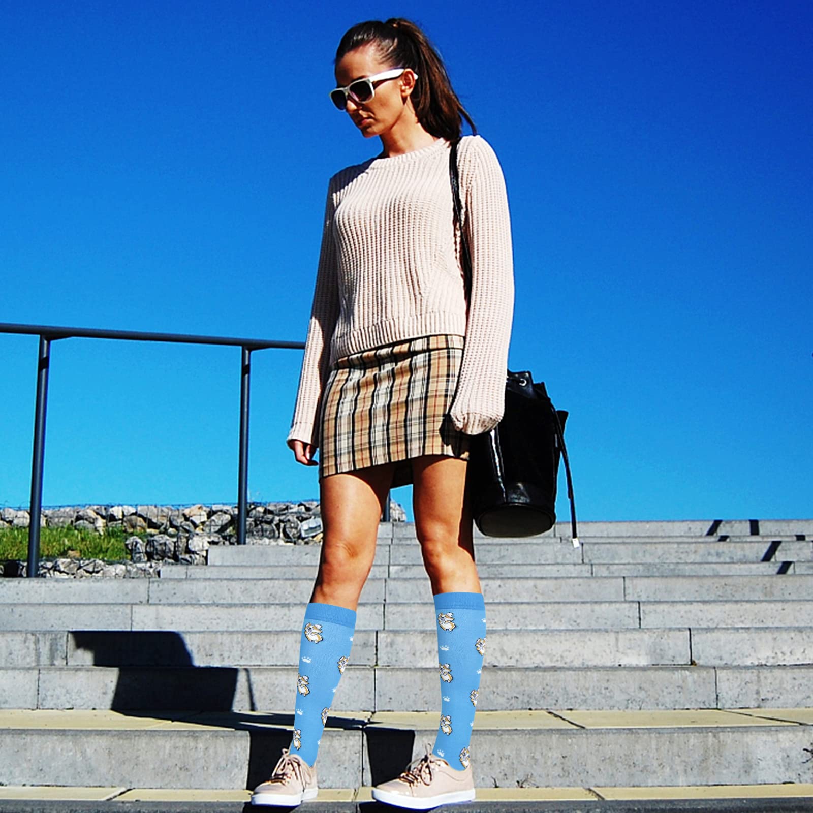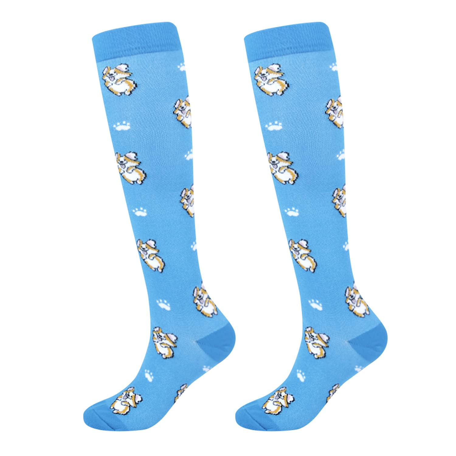 Junely Compression Socks for Women 20-30 mmhg Dog Knee High Stockings for Running Athletic Nurses Pregnant Women Work Support Travel Flight Sports Dog Mom Gifts Blue