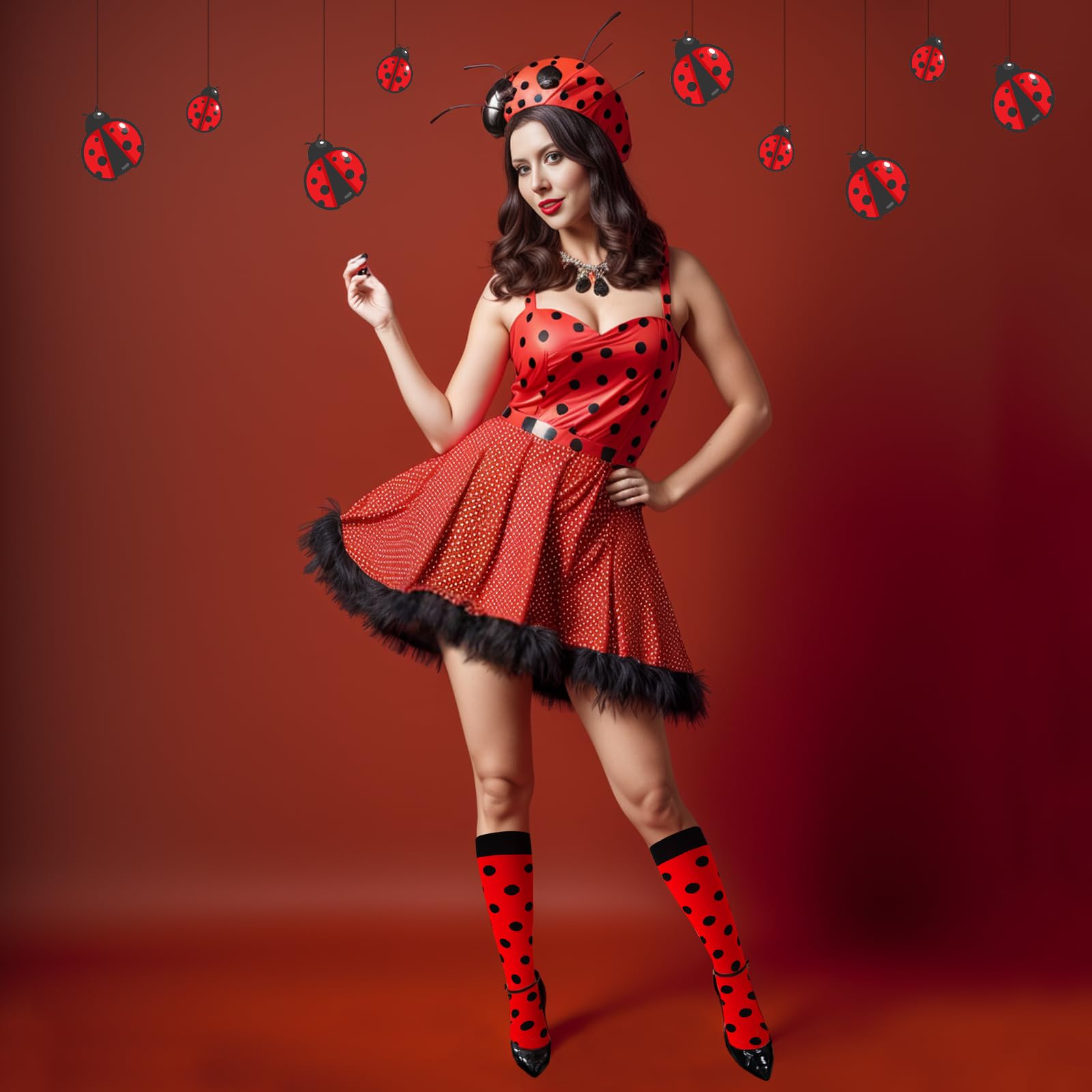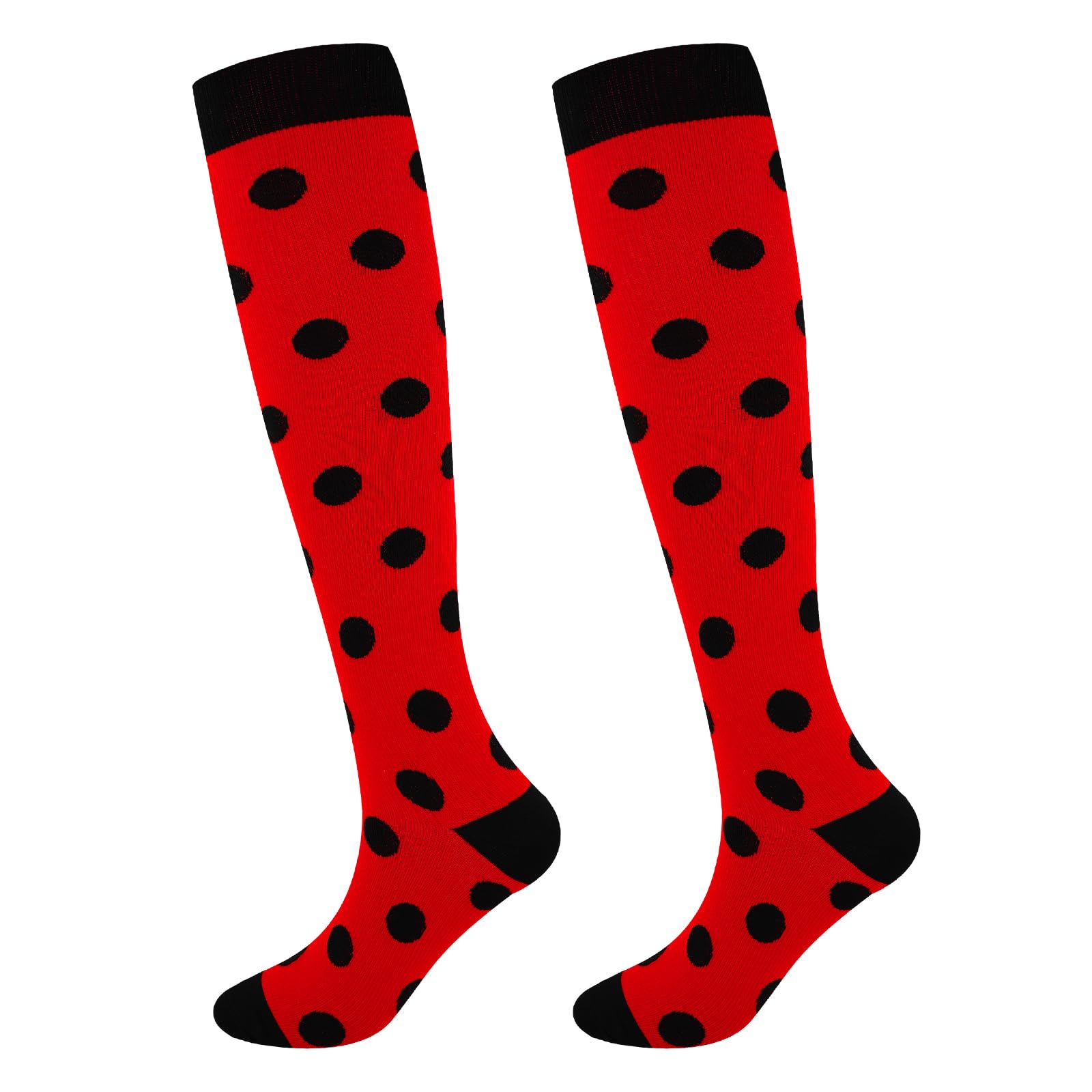 Junely Compression Socks for Women 20-30 mmhg Polka Dot Knee High Socks for Running Athletic Nurses Pregnant Women Work Support Travel Flight Sports Red