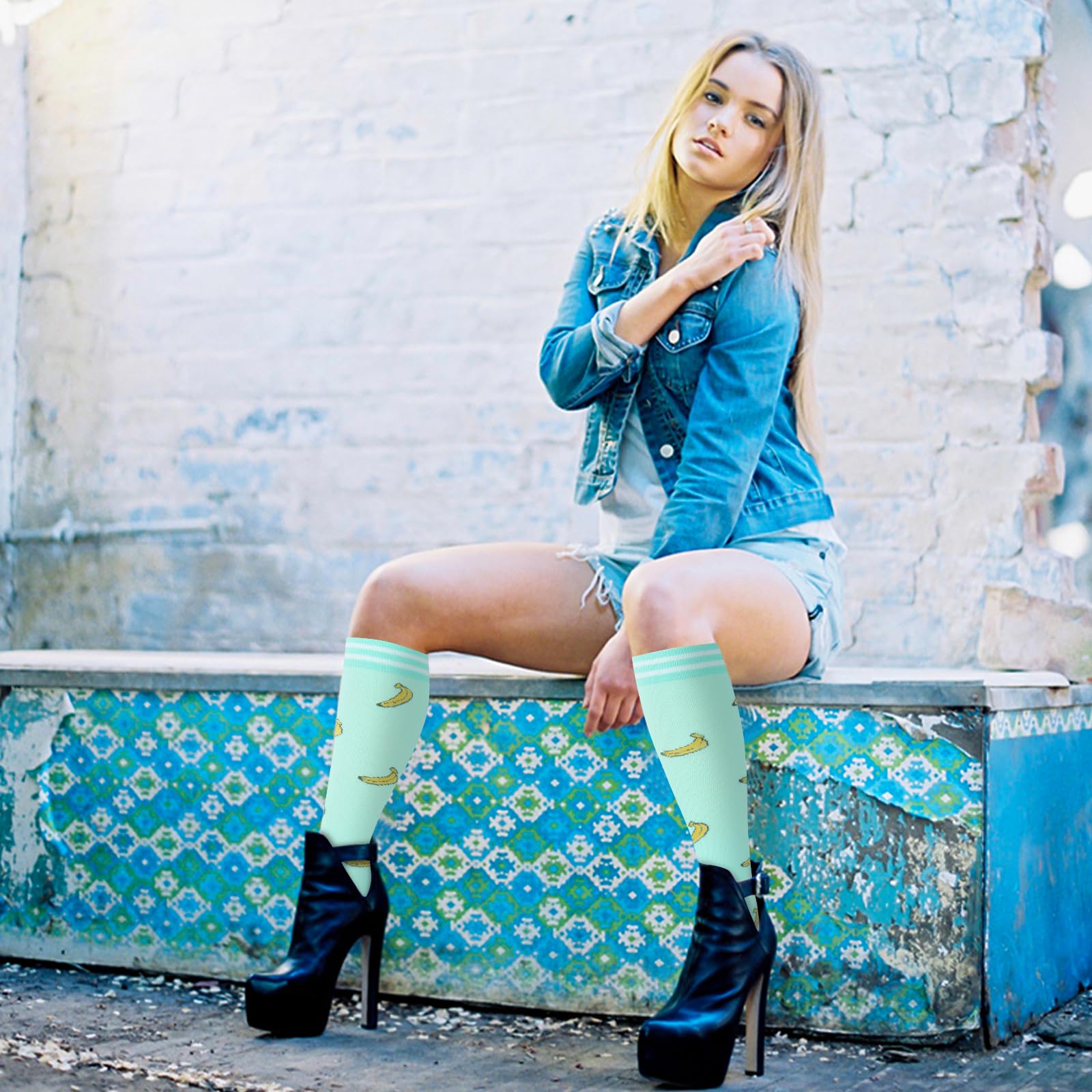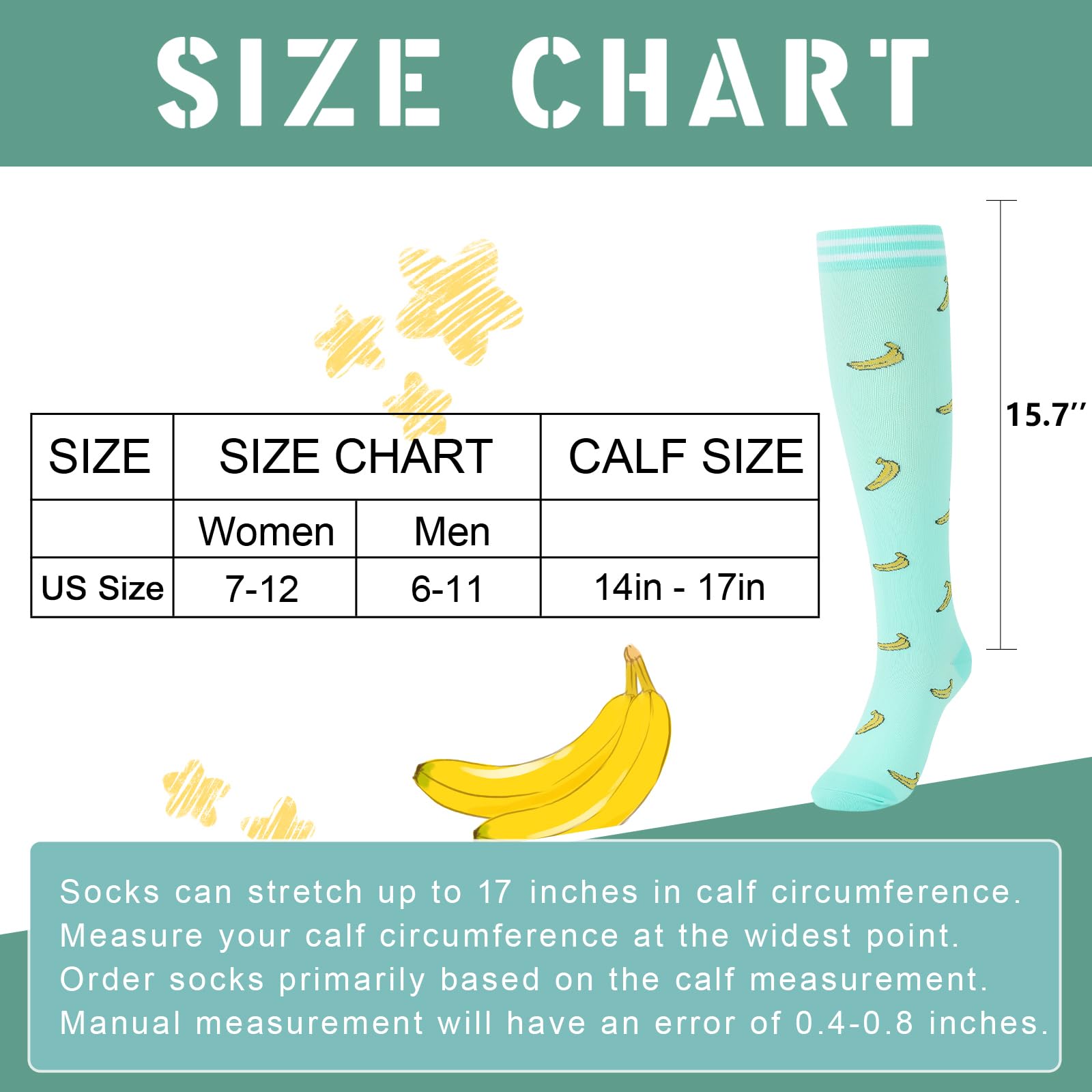 Junely Compression Socks for Women Banana Avocado Watermelon Knee High Socks for Running Athletic Nurses Pregnant Women Work Support Travel Flight Sports Fruit Themed Gifts Pink Blue Green