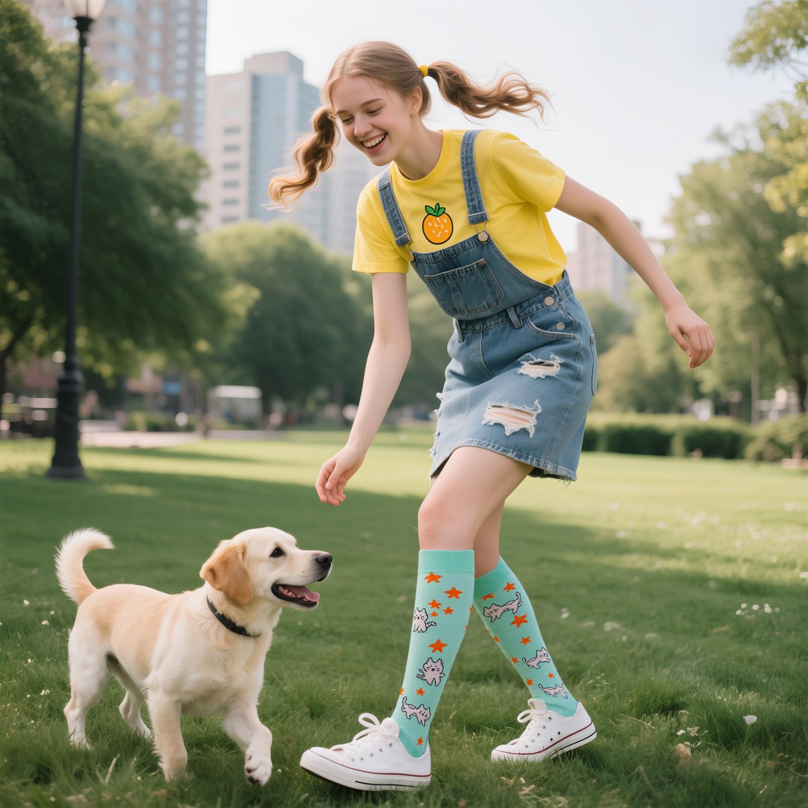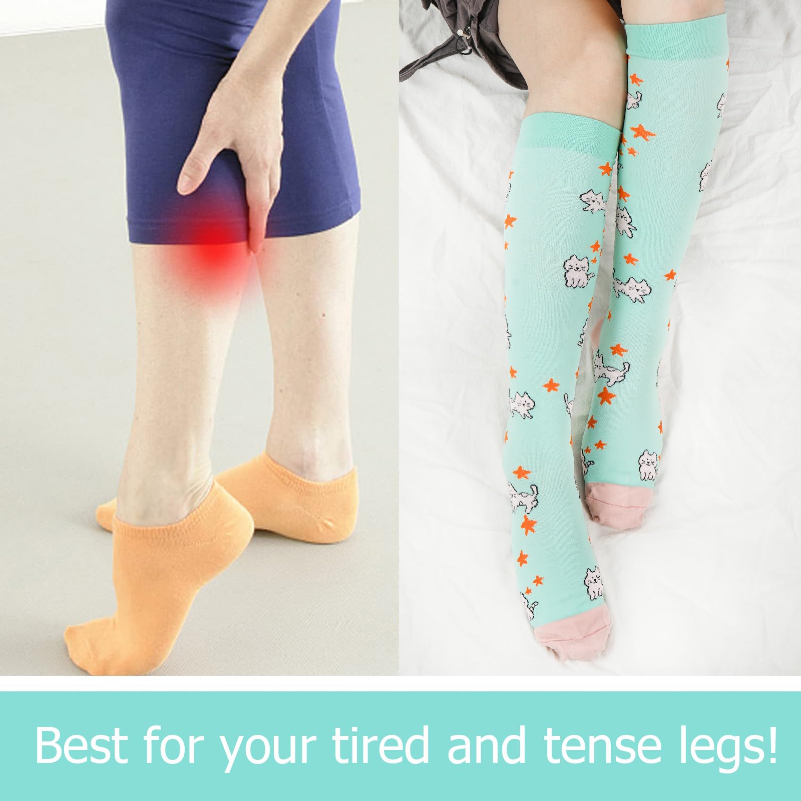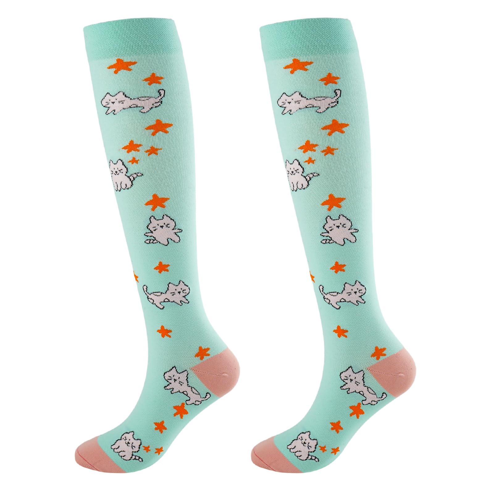 Junely Compression Socks for Women Cat Knee High Stockings for Running Athletic Nurses Pregnant Women Work Support Travel Flight Sports Cat Gifts Blue