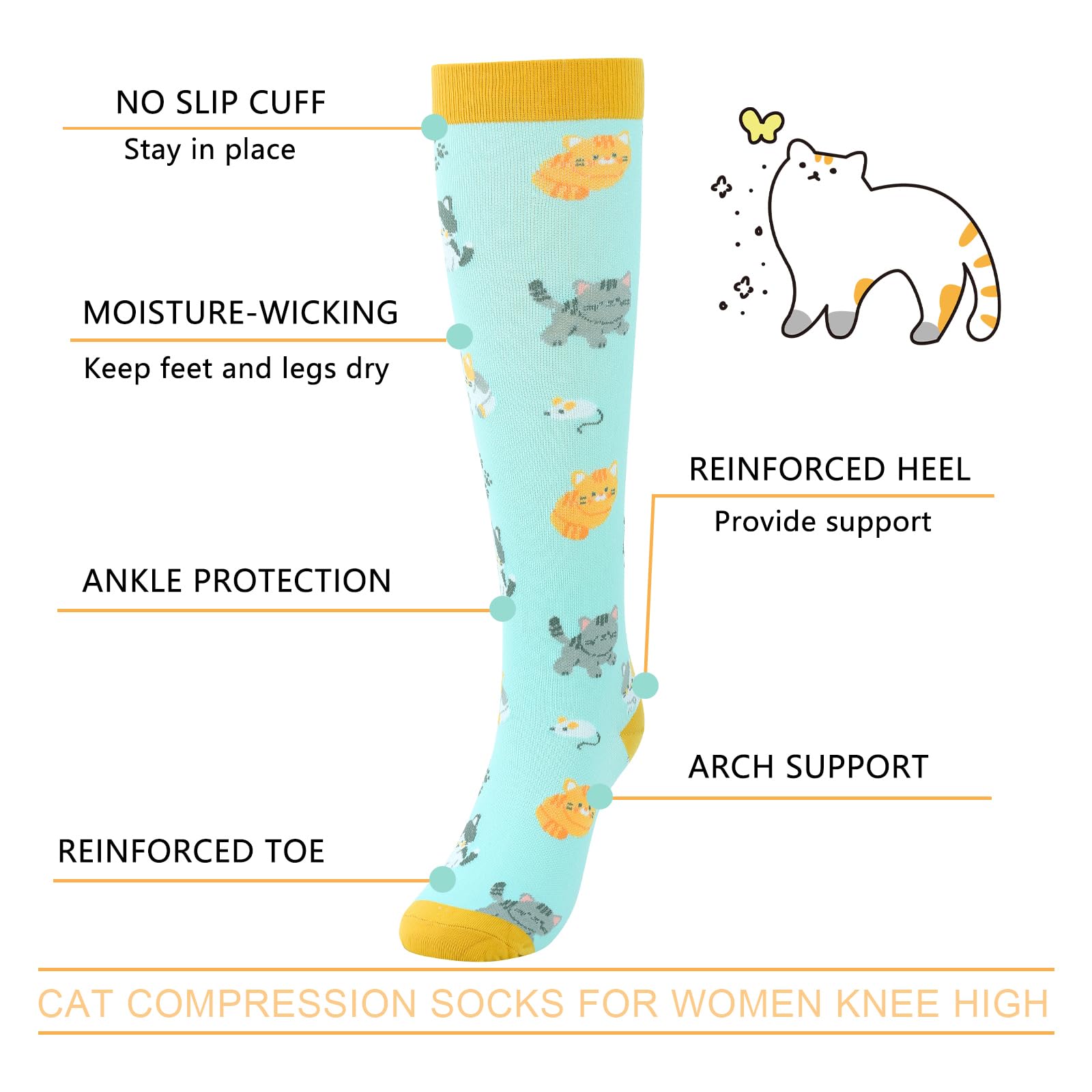 Junely Compression Socks for Women Cat Knee High Stockings for Running Athletic Nurses Pregnant Women Work Support Travel Flight Sports Gifts Green