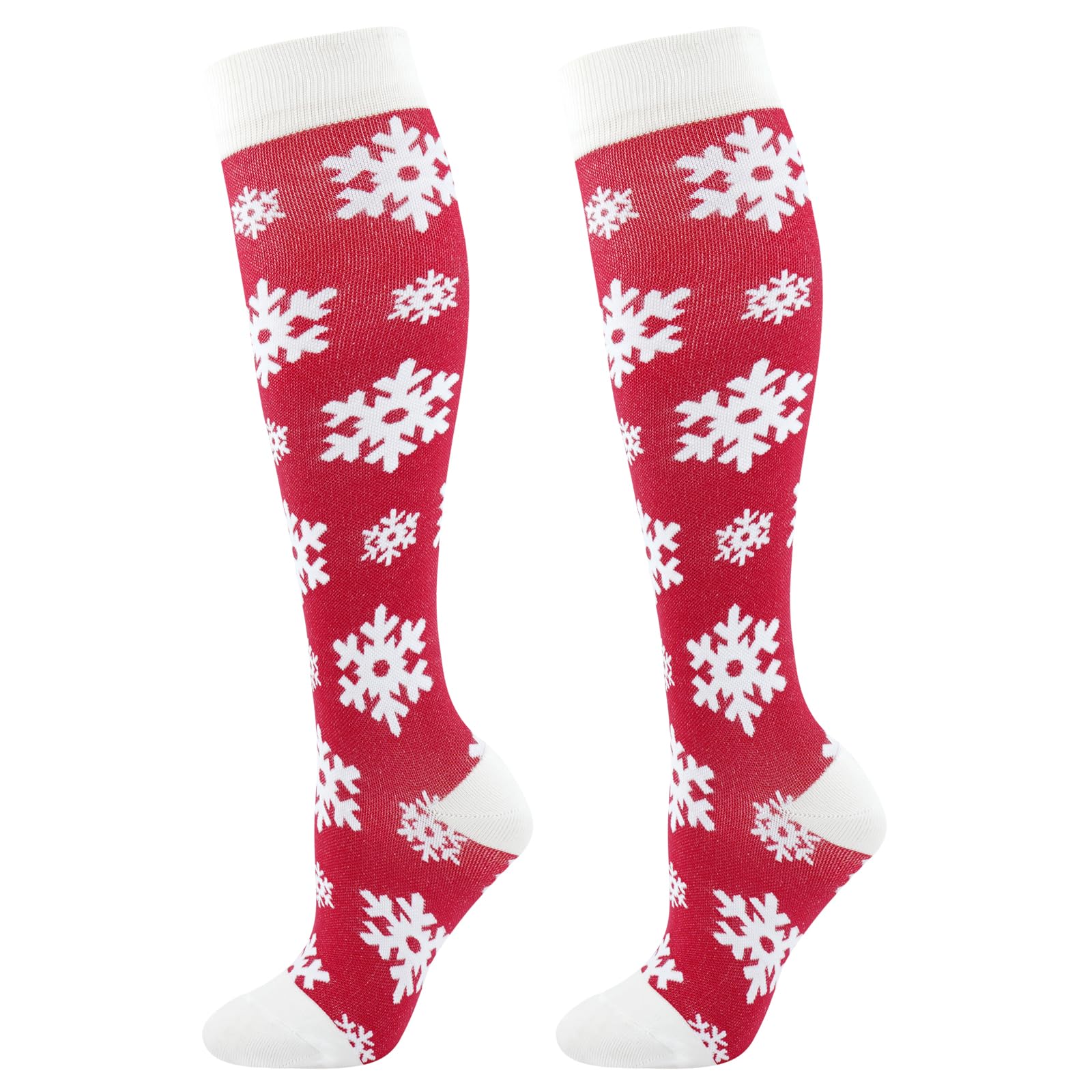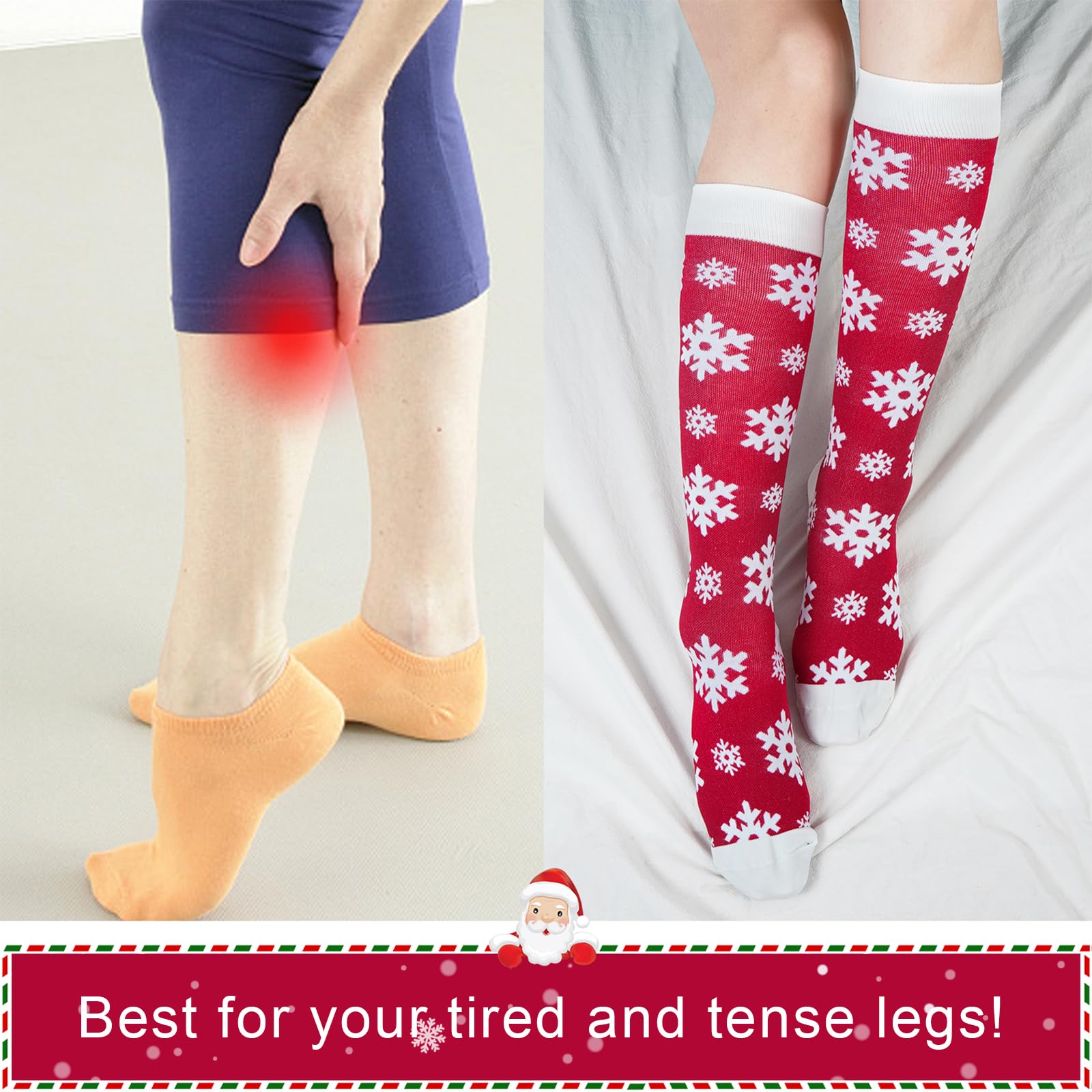 Christmas Compression Socks for Women 20-30 mmhg Knee High: The women Christmas socks with snowflakes on them are great for Christmas clothing for women. The breathable and light compression socks are easy to match any Christmas costume and Christmas outfit. Our women's Christmas socks are beneficial to your health, a wonderful gifts.