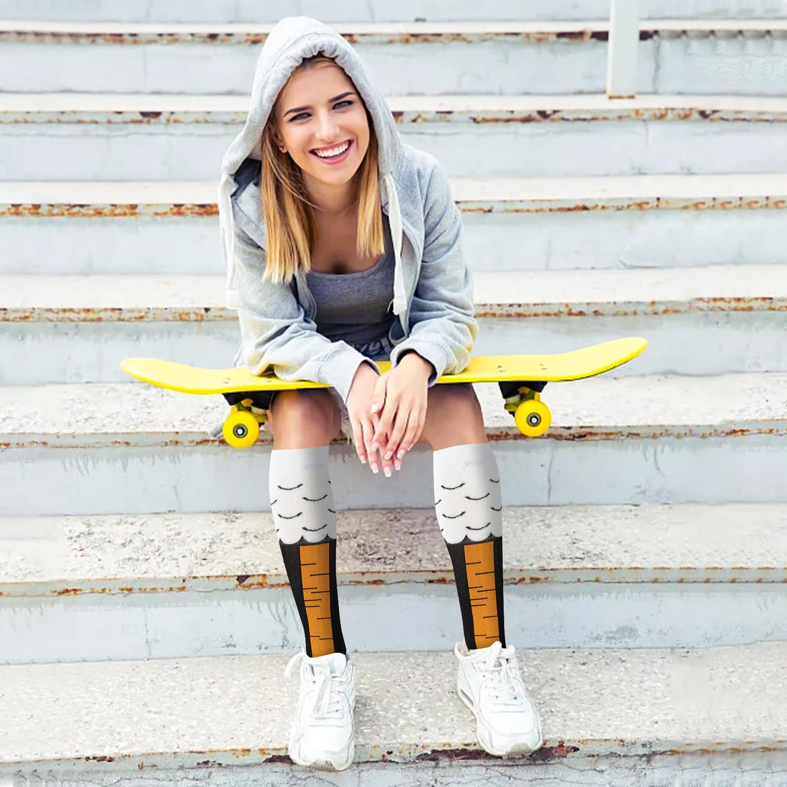 Junely Compression Socks for Women Knee High Chicken Leg Socks for Halloween Thanksgivings Christmas Running Athletic Nurses Pregnant Women Work Support Travel Flight Sports Gifts Black