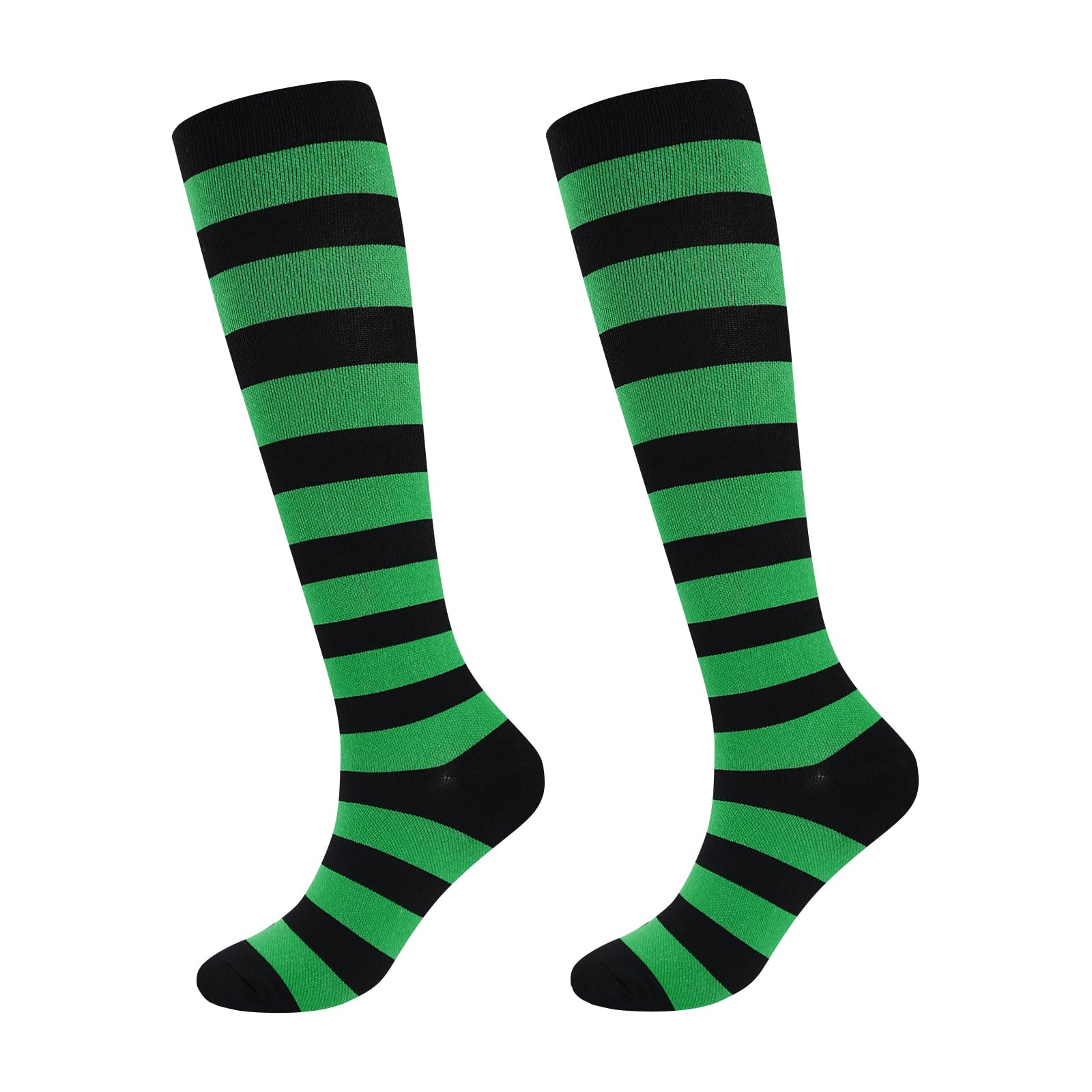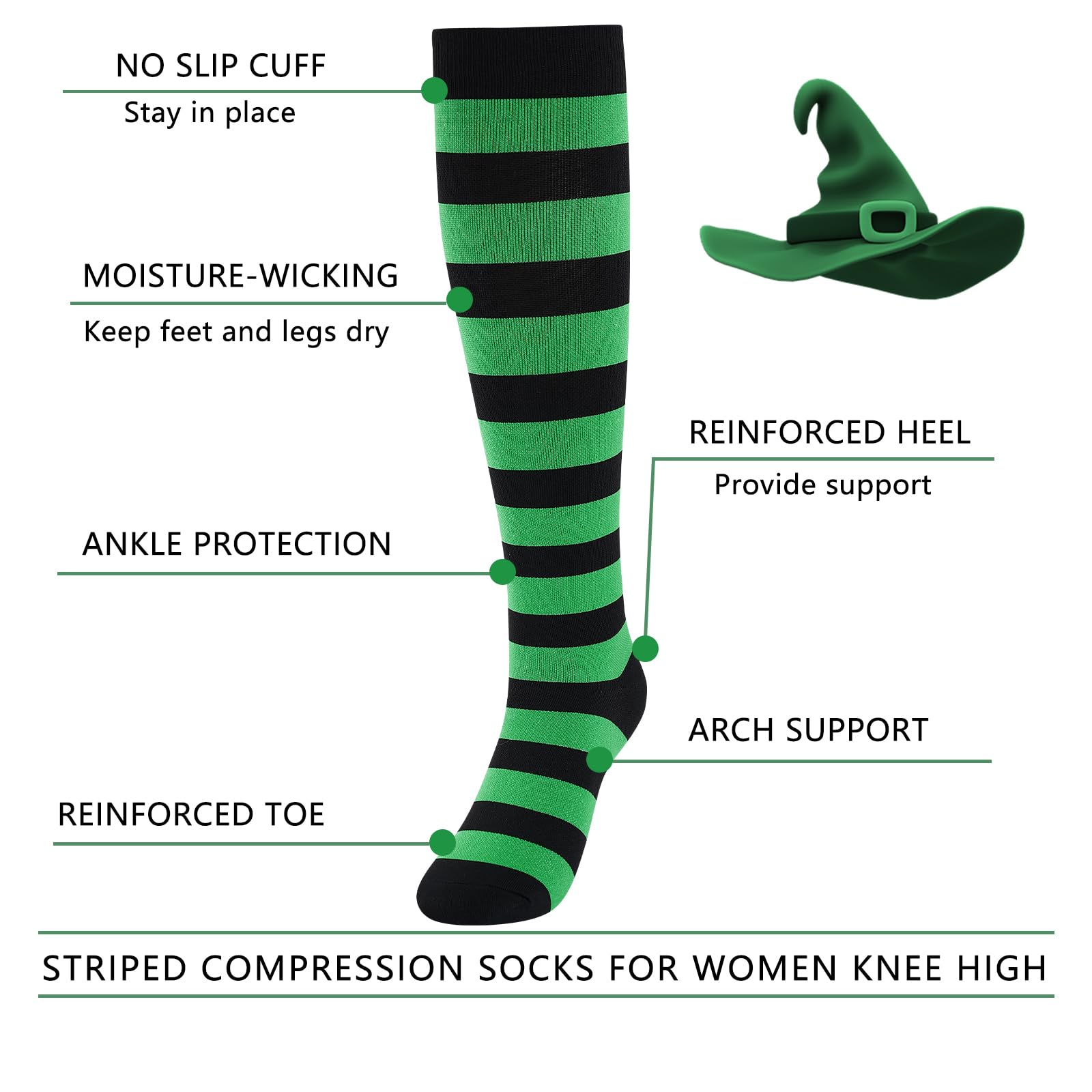 Junely Compression Socks for Women Striped Knee High Stockings for Halloween Running Athletic Nurses Pregnant Women Work Support Travel Flight Sports Gifts Green and Black