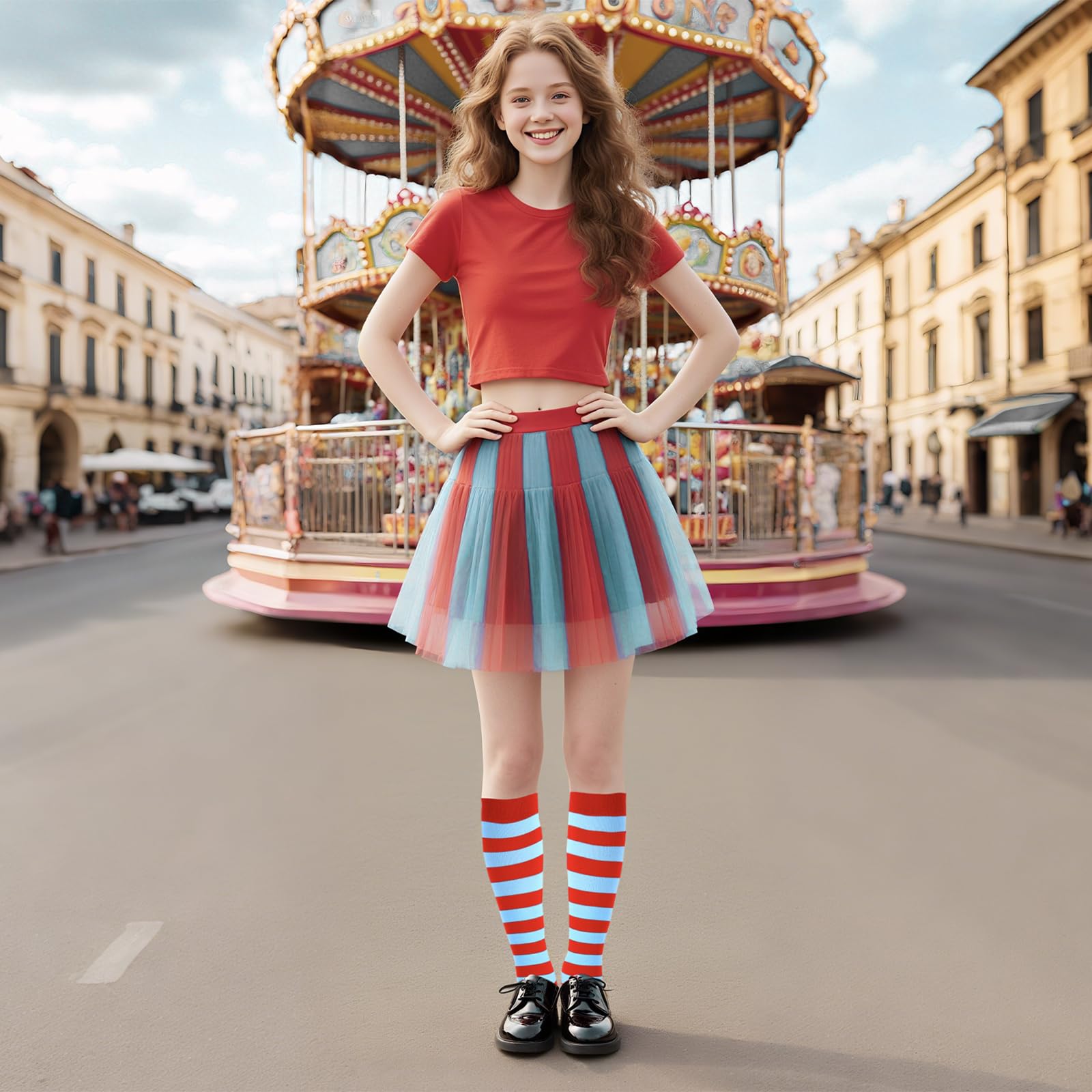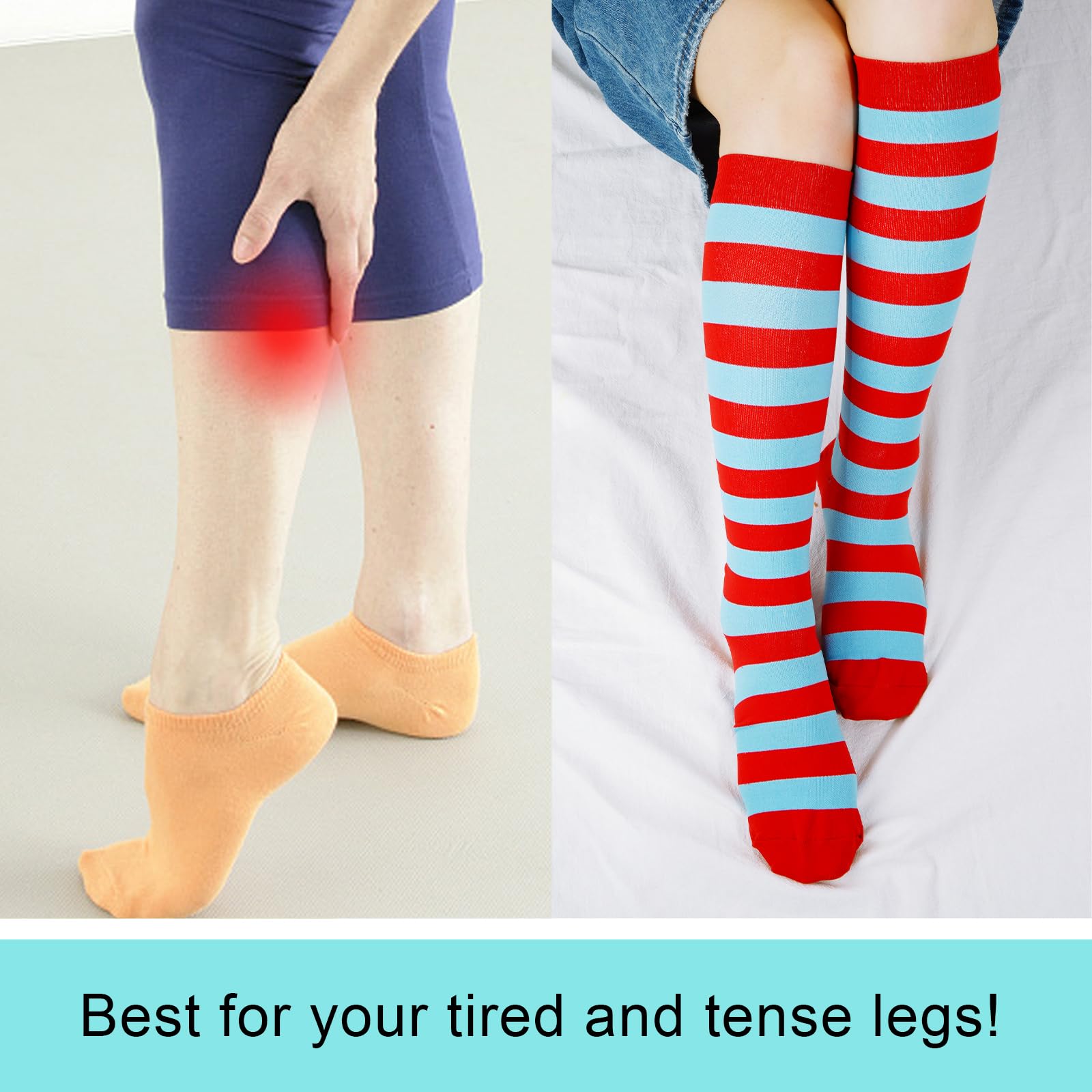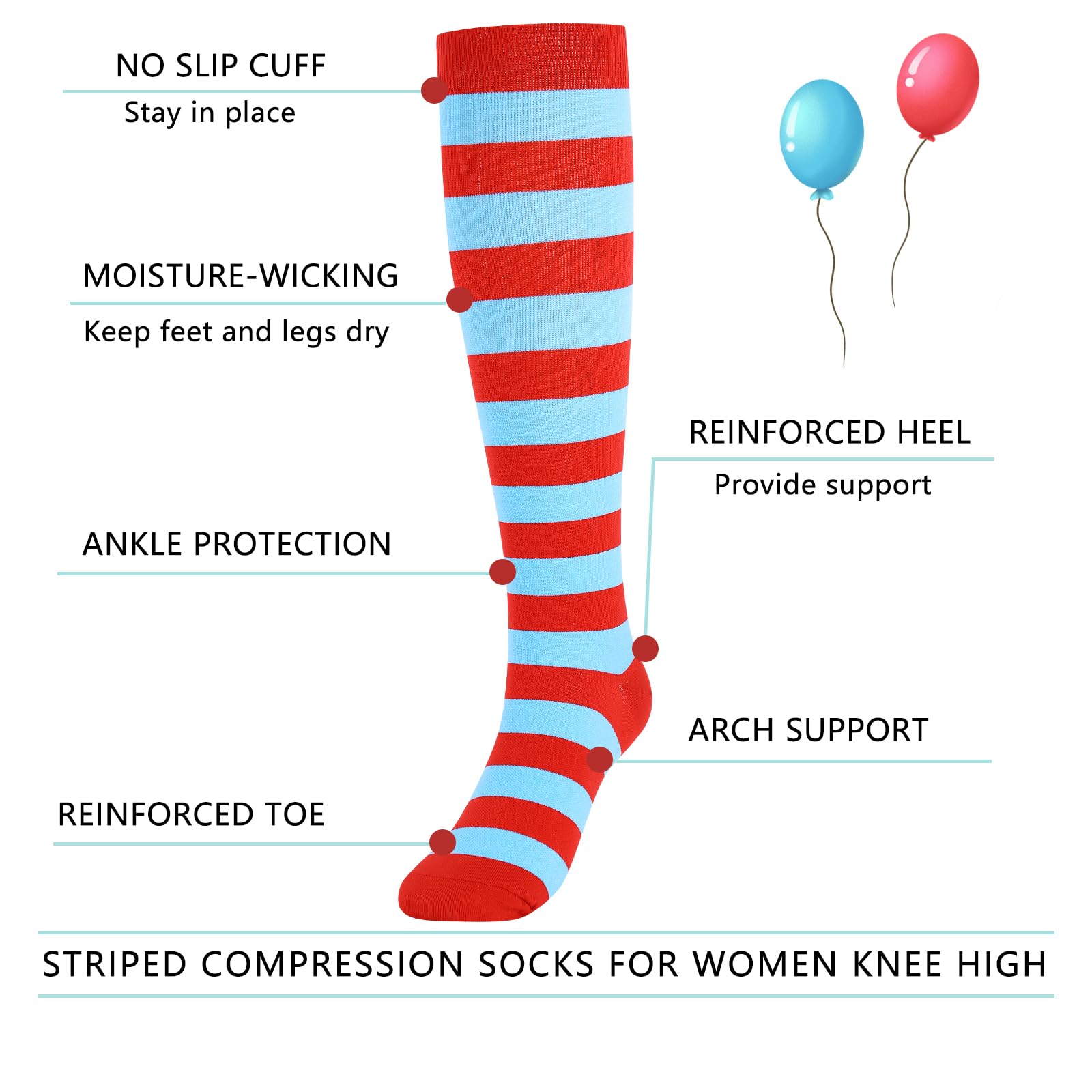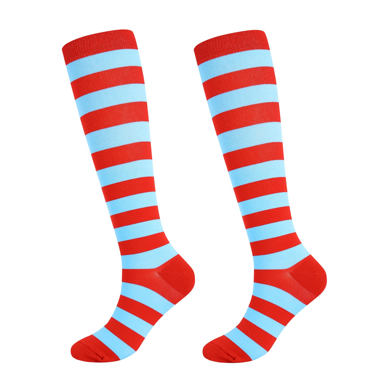 Junely Compression Socks for Women Striped Knee High Stockings for Halloween Running Athletic Nurses Pregnant Women Work Support Travel Flight Sports Gifts Red and Blue