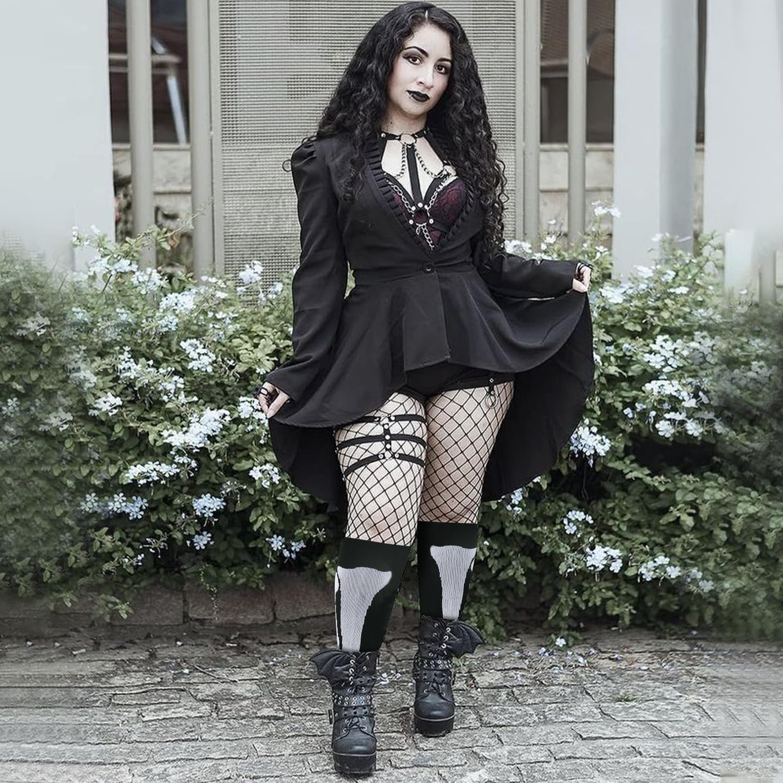 Junely Compression Socks for Women Wide Calf Knee High Skeleton Stockings for Halloween Running Athletic Nurses Pregnant Women Work Support Travel Flight Sports Gifts Black