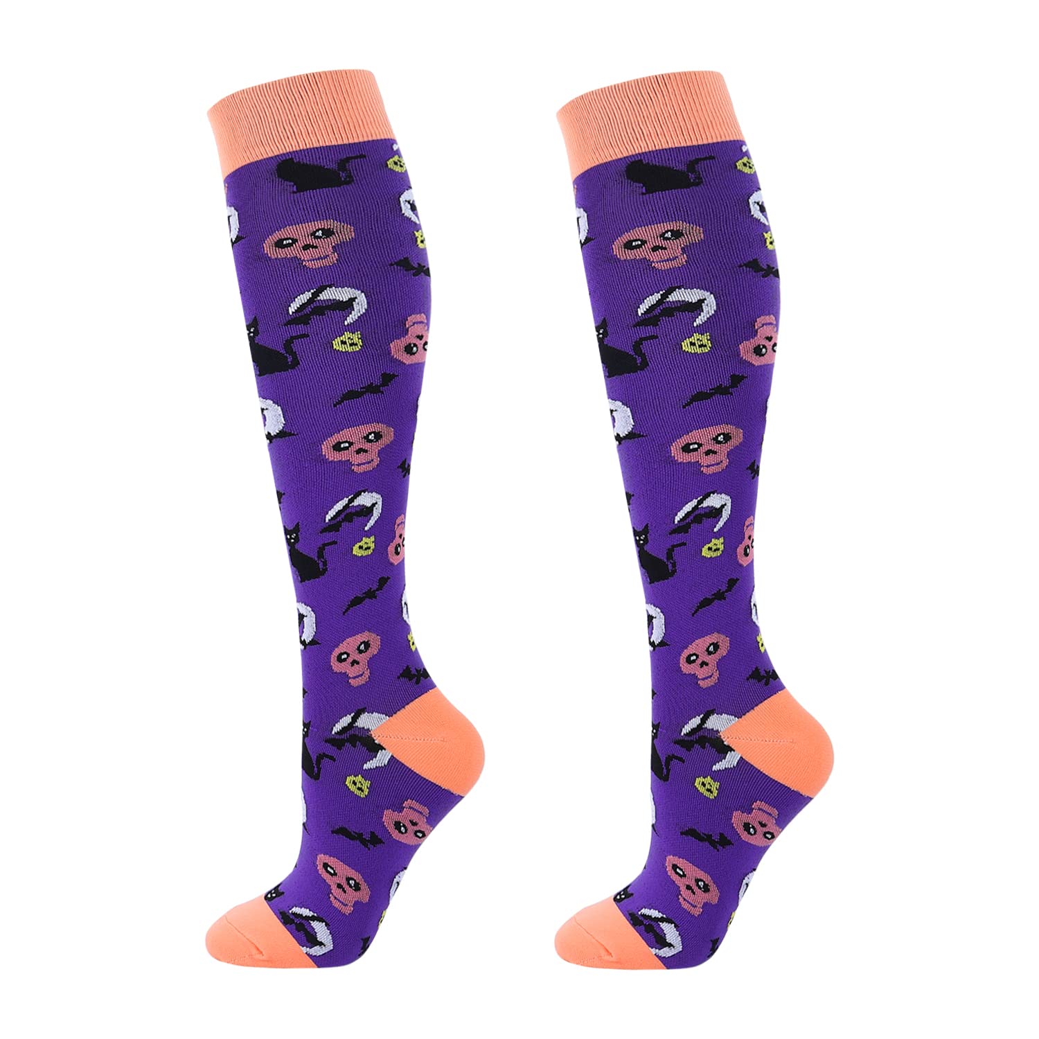 Junely Halloween Compression Socks for Women 20-30 mmhg Knee High Socks for Running Athletic Nurses Pregnant Women Work Support Travel Flight Sports Gifts Purple