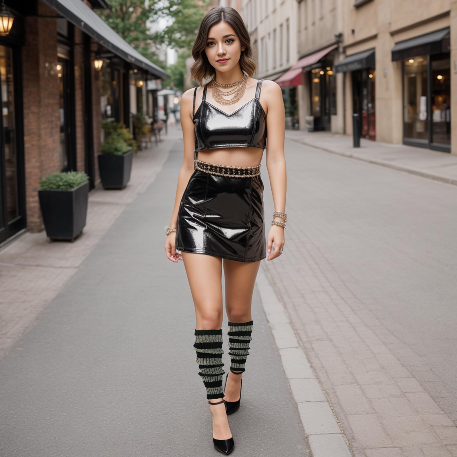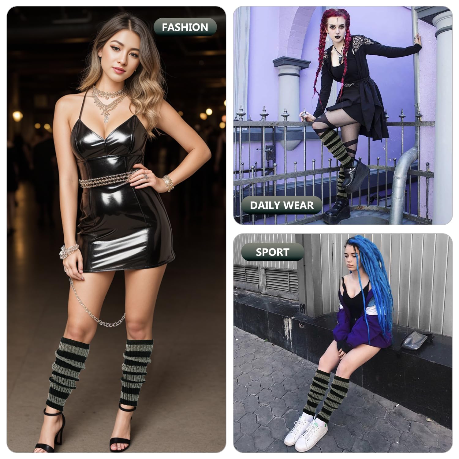 Junely Leg Warmers 80s Goth Leg Warmer Knit Legwarmers Halloween Emo Kawaii Lolita Gyaru Gothic Accessories for Ballet Figure Skating Ice Skating Dance Black Grey