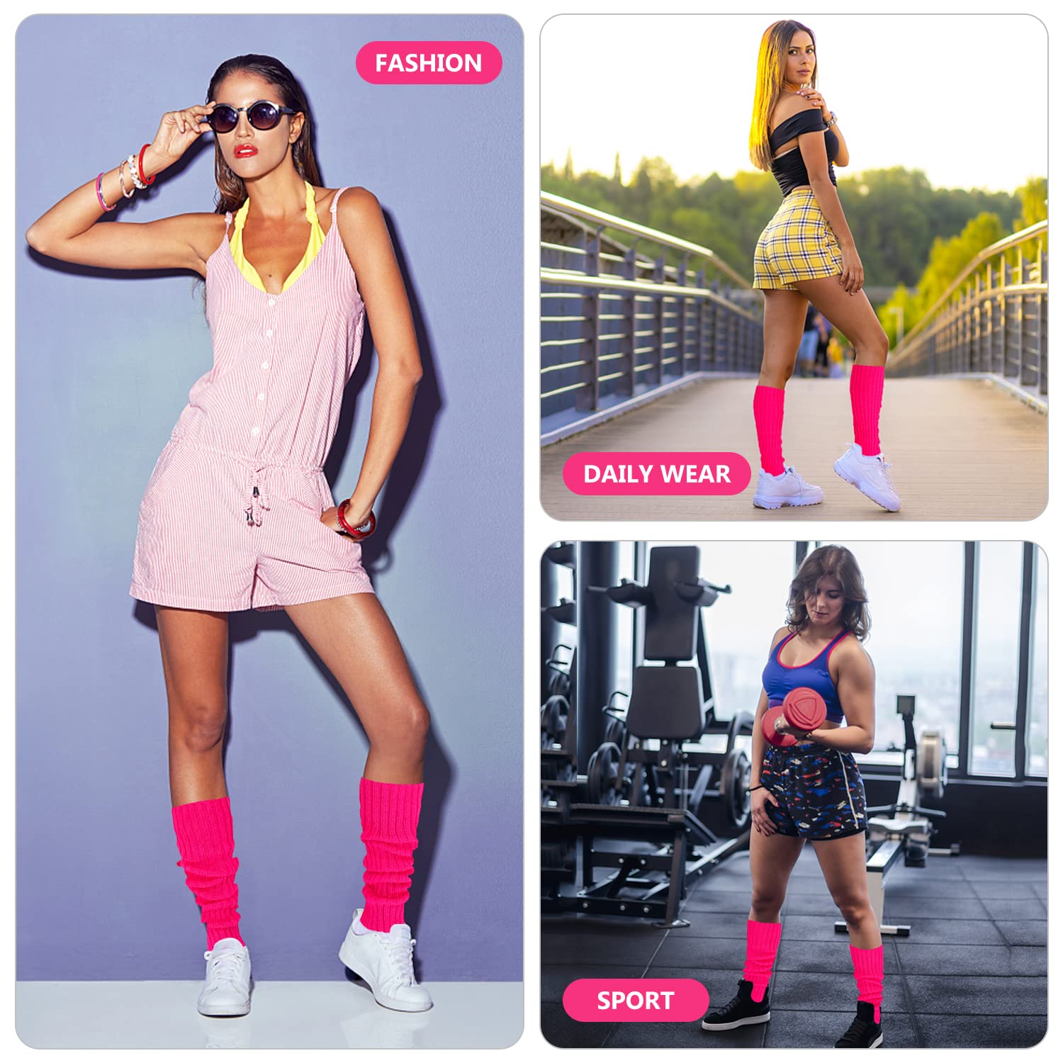 Junely Leg Warmers 80s Leg Warmer Knit Legwarmers Neon for Ballet Dance Figure Skating Ice Skating Boot Hot Pink Green