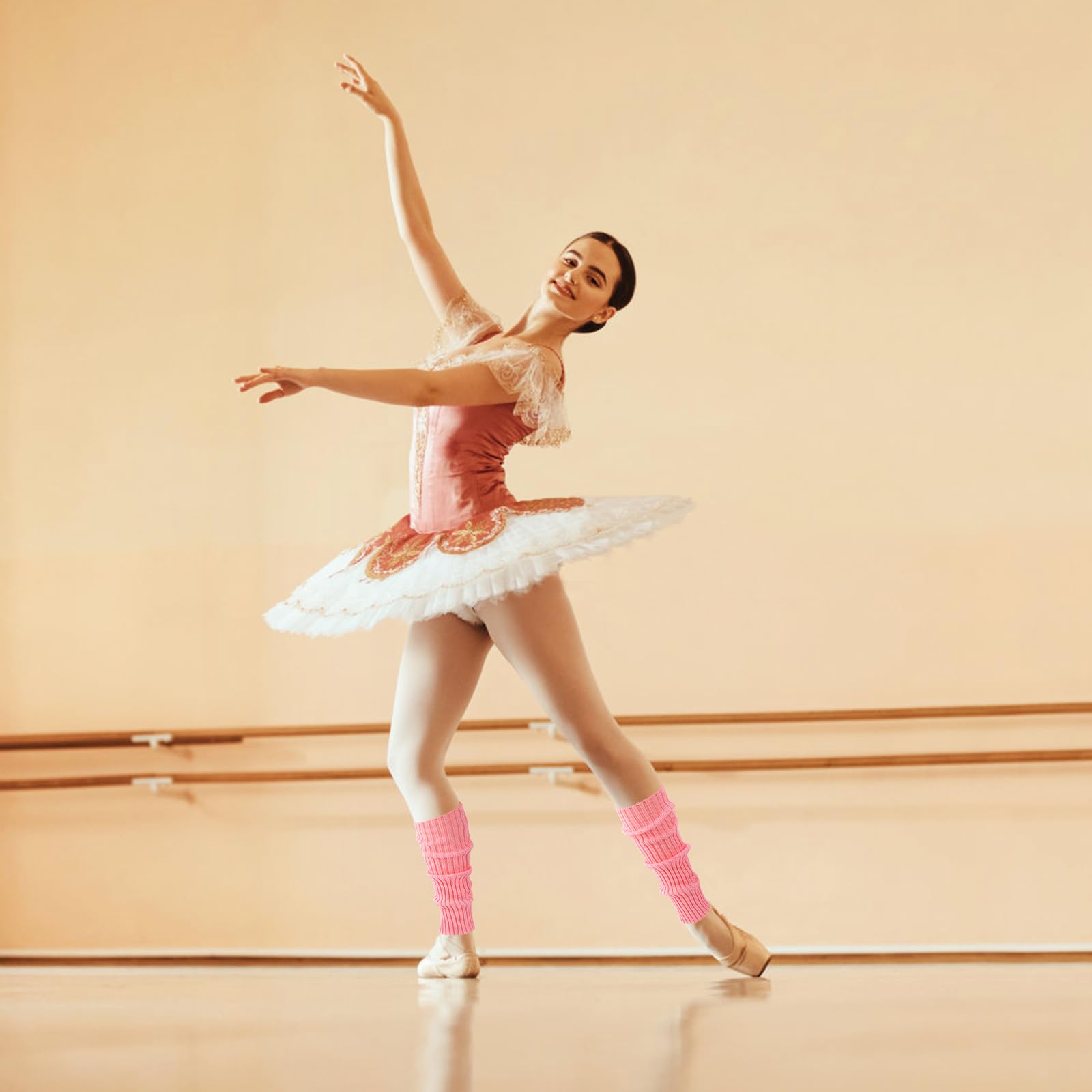 Junely Leg Warmers 80s Neon Leg Warmer Knit Legwarmers for Ballet Dance Figure Skating Ice Skating Boot Light Pink