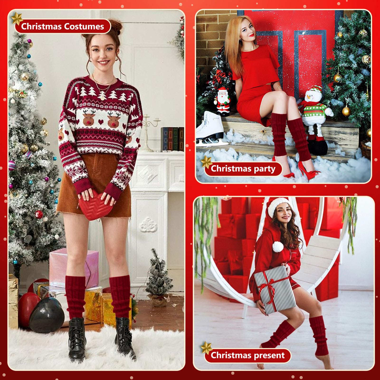 Junely Leg Warmers Christmas Leg Warmer Knit Legwarmers Neon for Winter 80s Ballet Dance Figure Skating Ice Skating Boot Wine Red