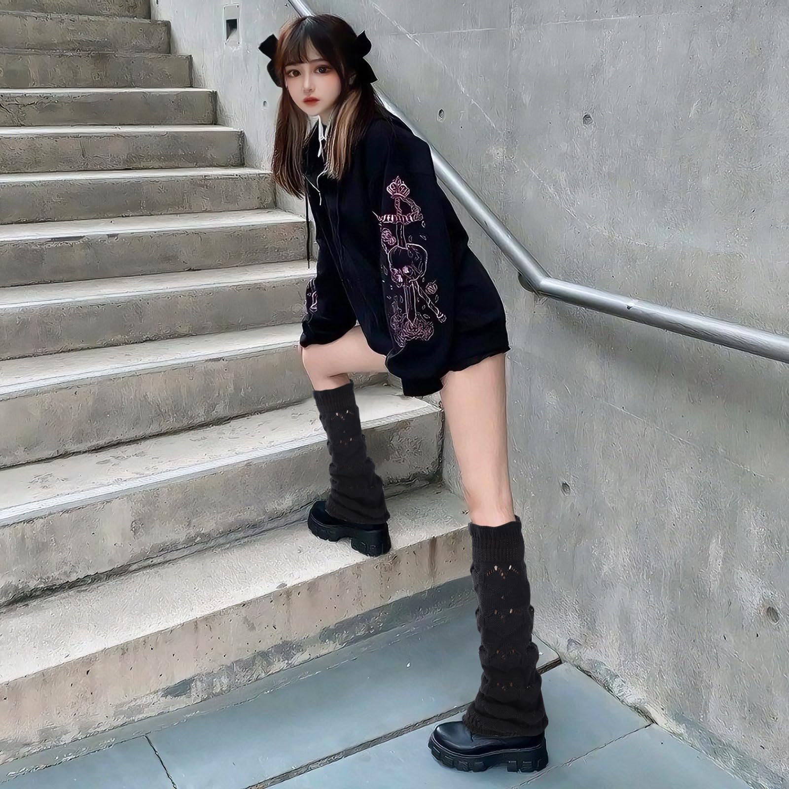 Junely Leg Warmers for Women Kawaii Leg Warmer Cute Legwarmers Cutecore Lolita Harajuku Gyaru Japanese Accessories Black