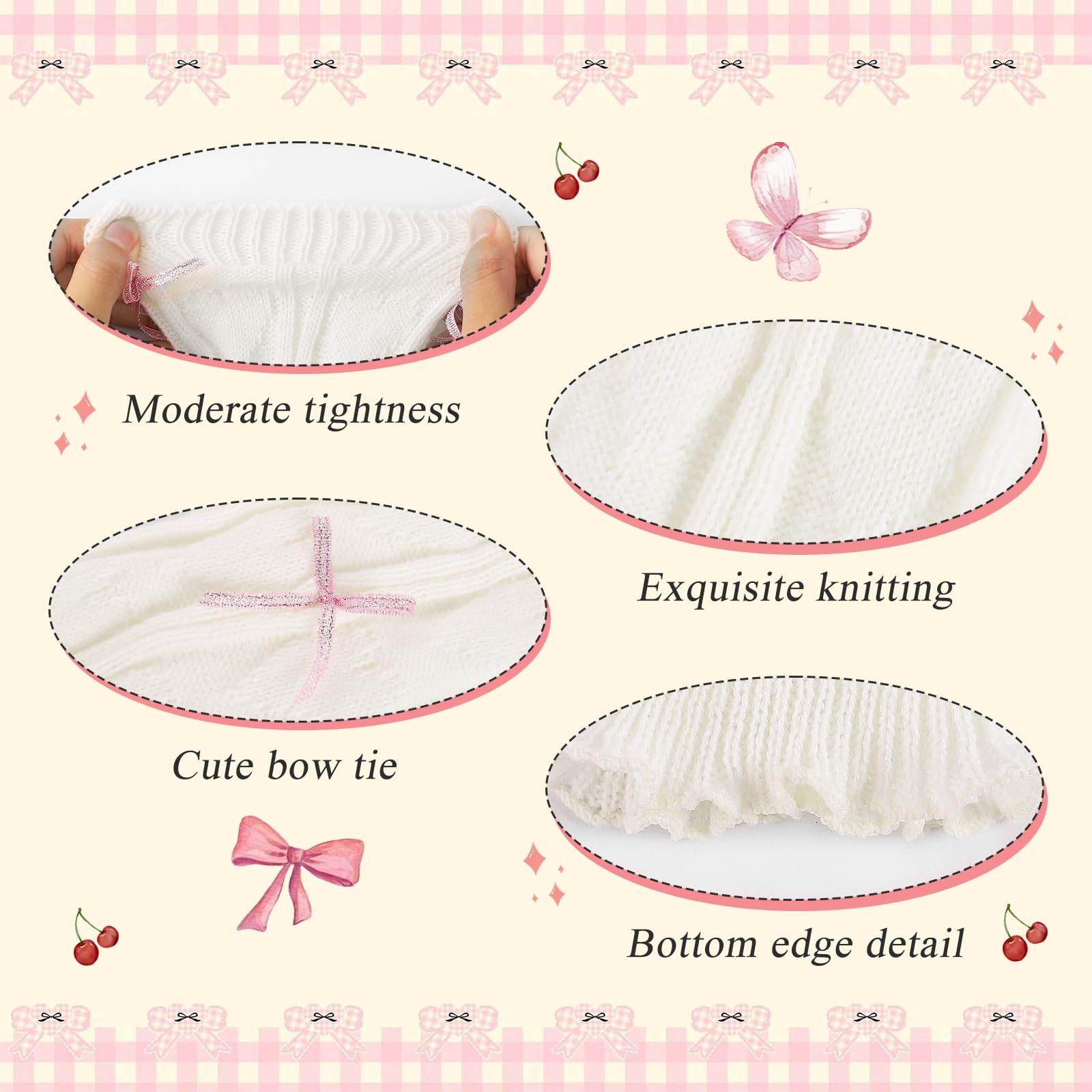 Junely Leg Warmers for Women Kawaii Leg Warmer Cute Legwarmers with Bows Cutecore Lolita Harajuku Gyaru Japanese Accessories White