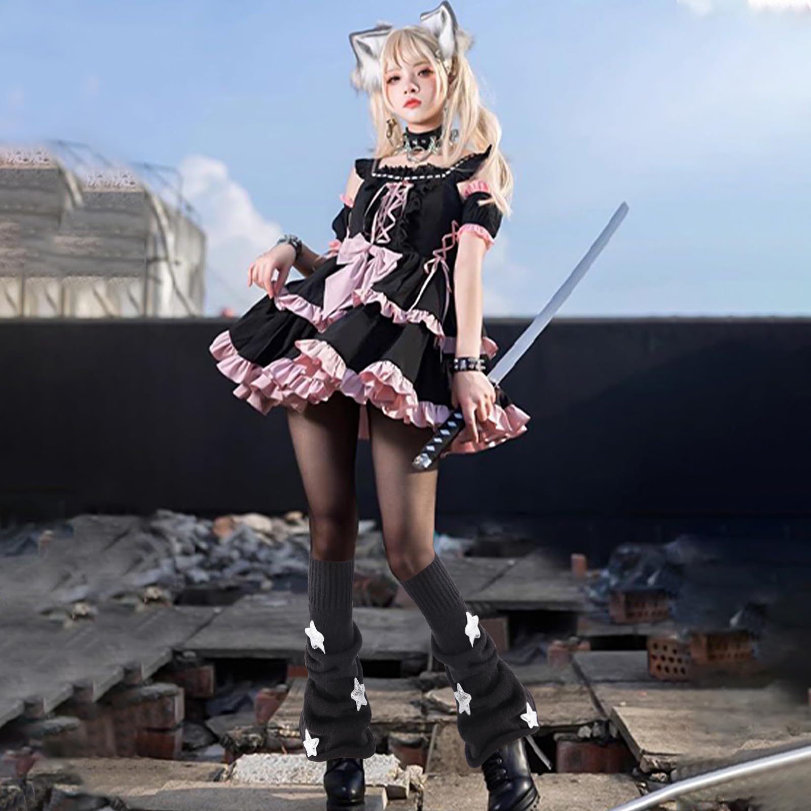Junely Leg Warmers Kawaii Leg Warmer Cute Legwarmers with Sequin Star Japanese Socks Halloween Emo Lolita Gyaru Harajuku Accessories Black