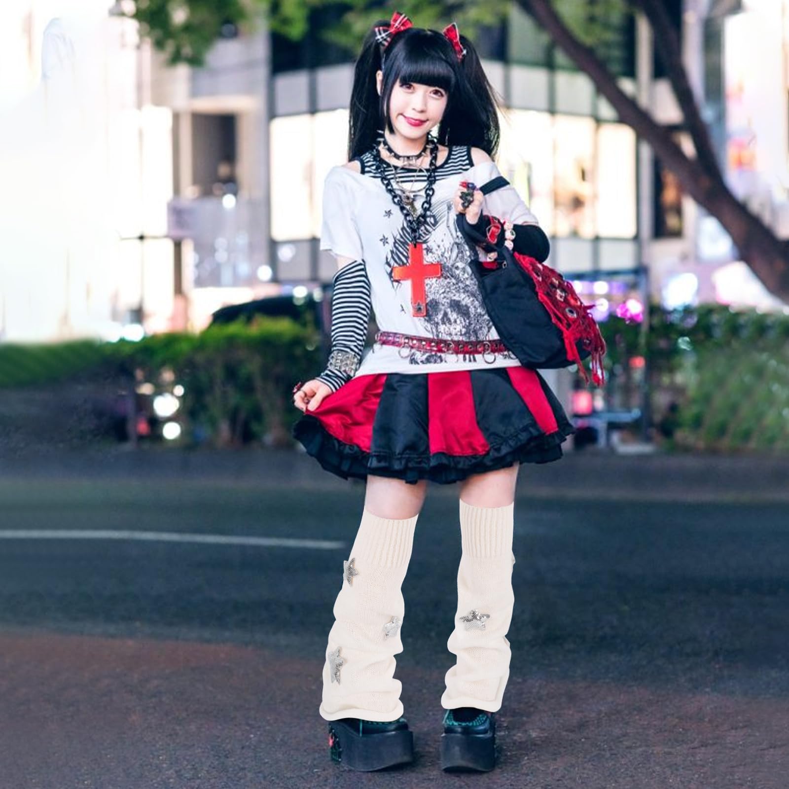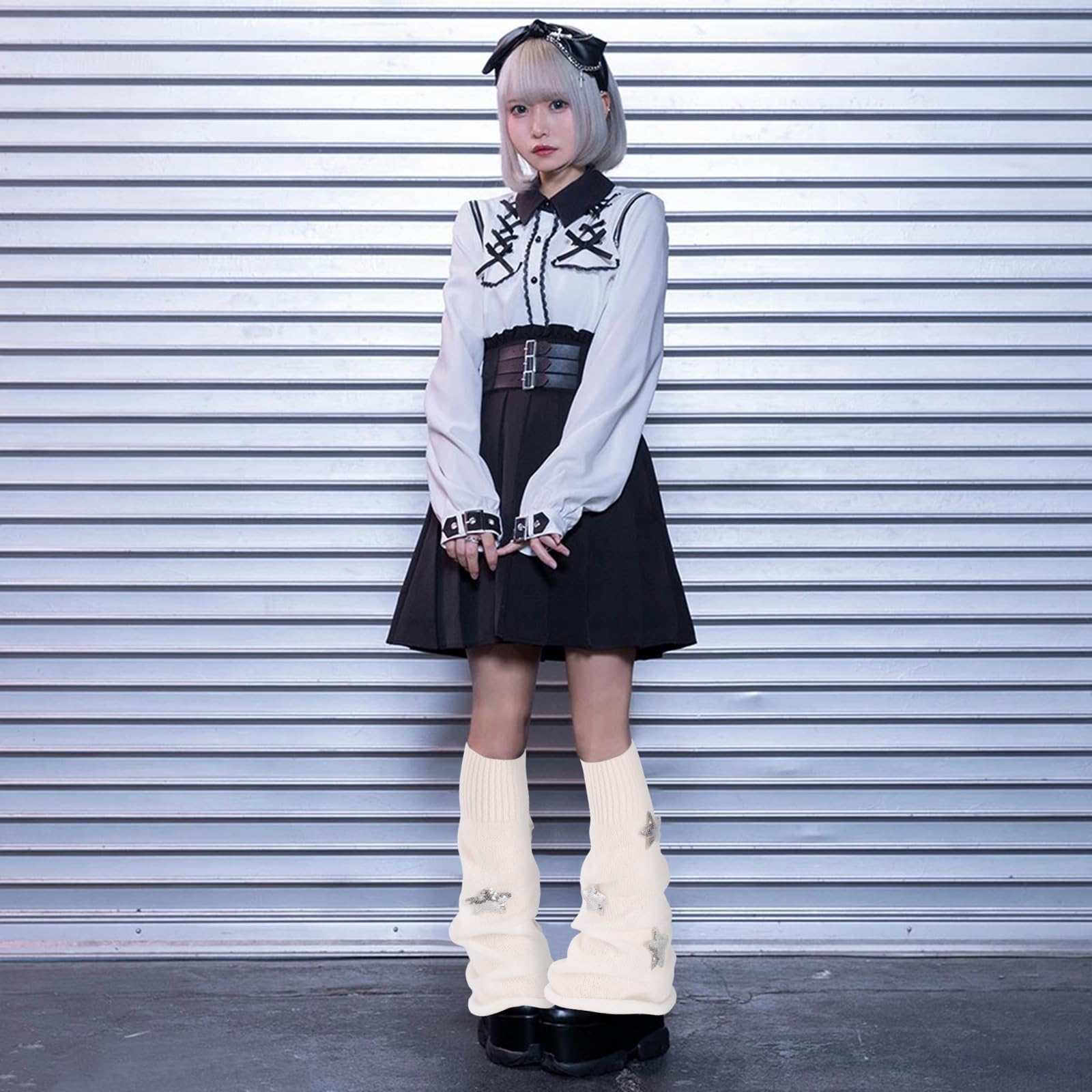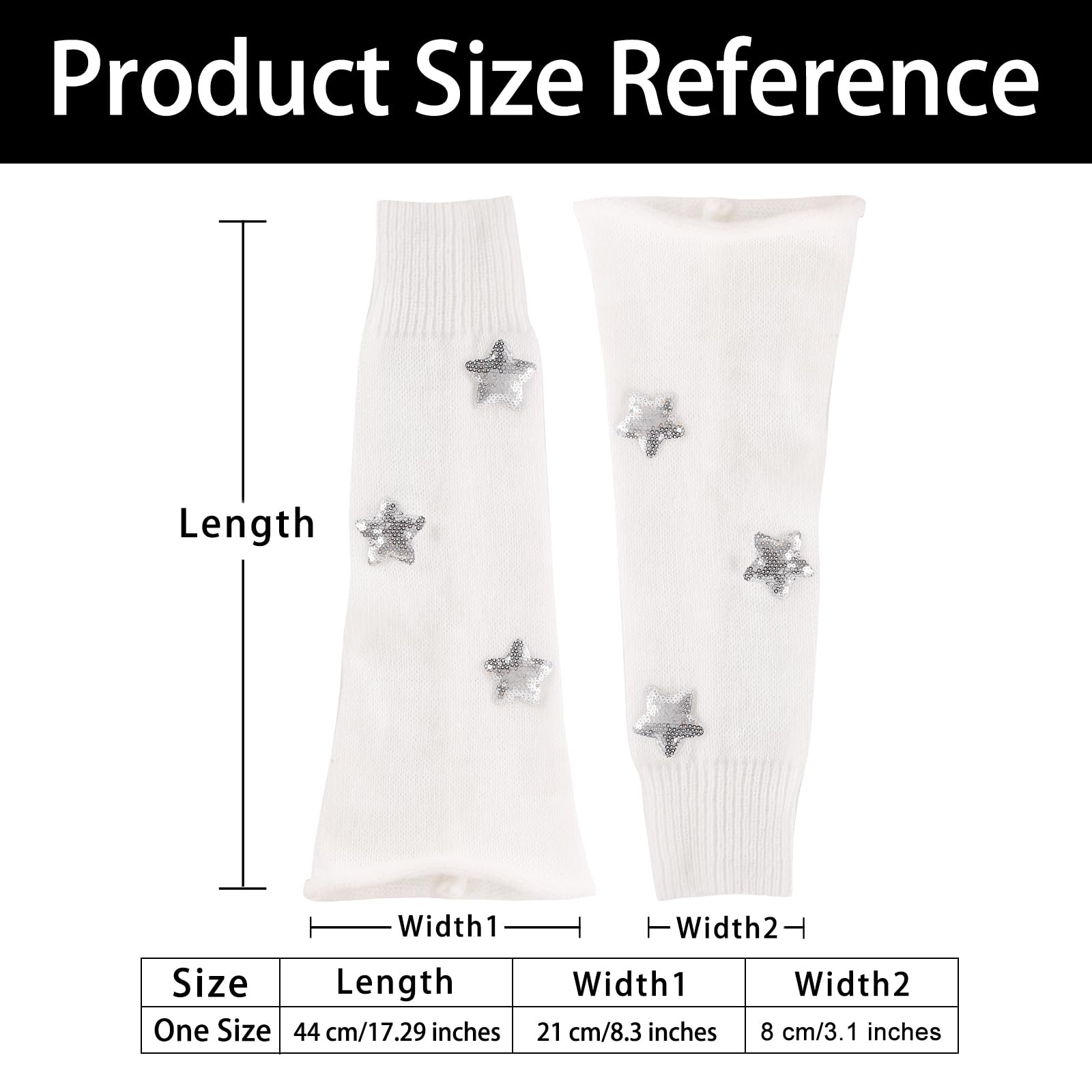 Junely Leg Warmers Kawaii Leg Warmer Cute Legwarmers with Sequin Star Japanese Socks Halloween Emo Lolita Gyaru Harajuku Accessories White