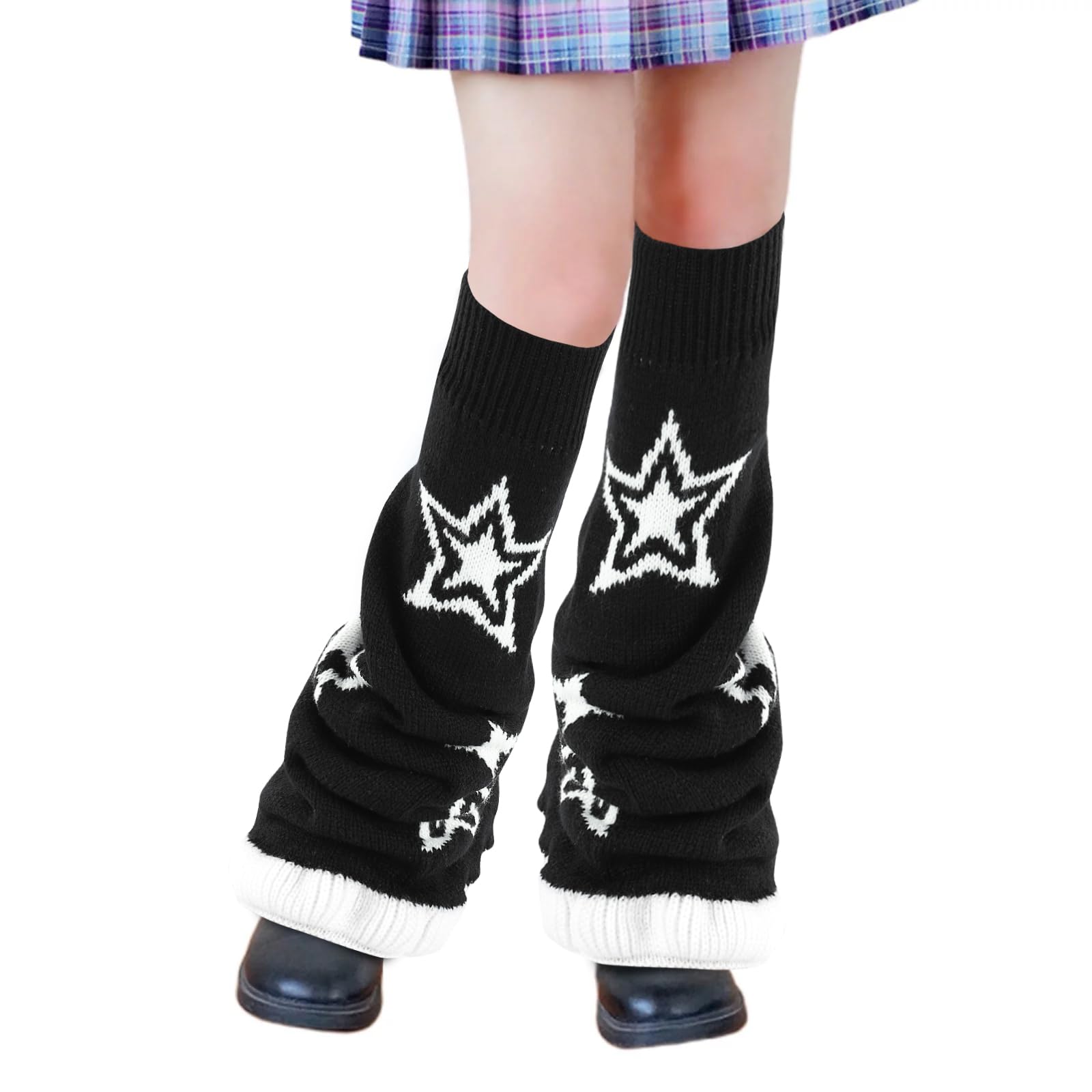 Junely Leg Warmers Kawaii Leg Warmer Cute Legwarmers with Star Reversible Japanese Socks Halloween Emo Lolita Gyaru Harajuku Accessories Black