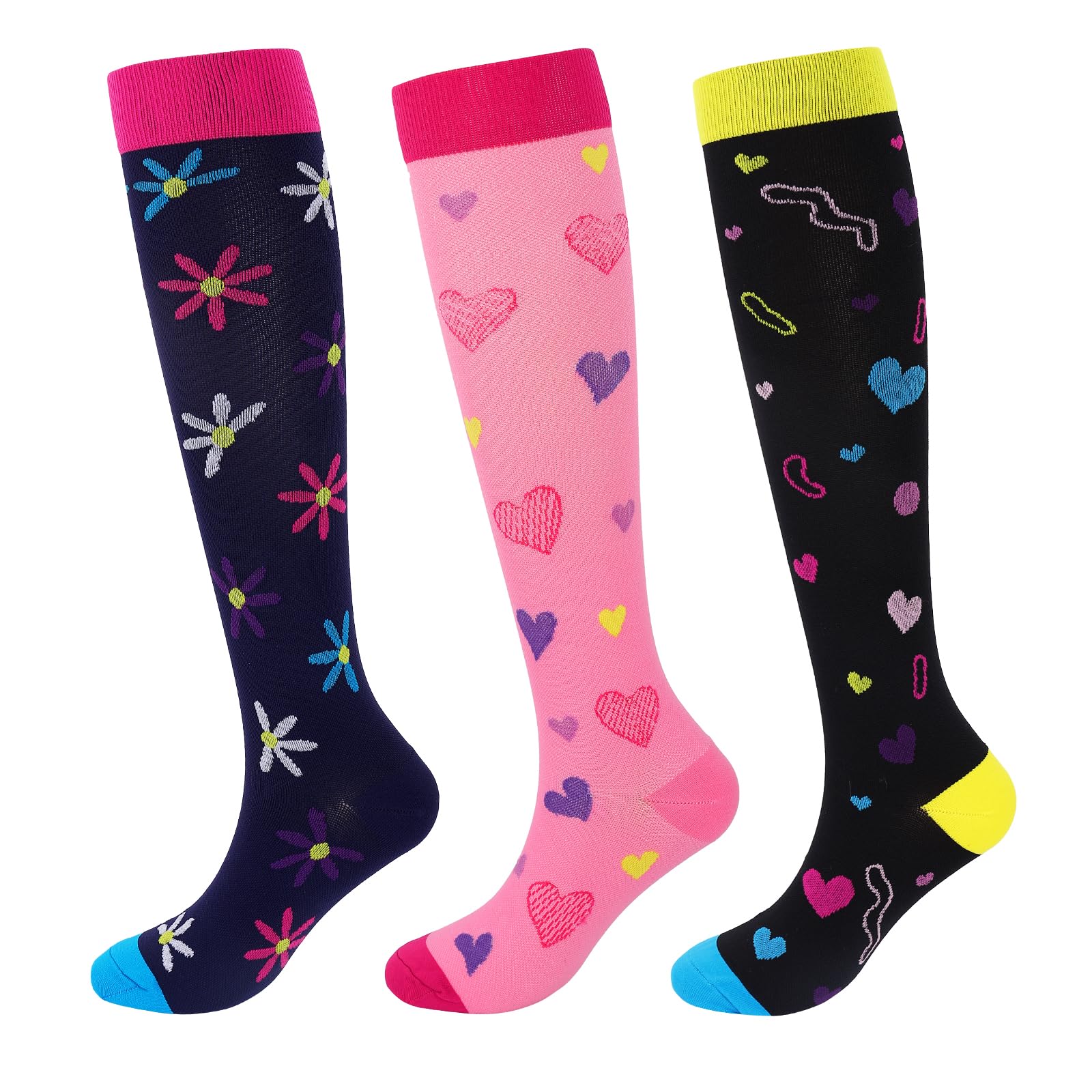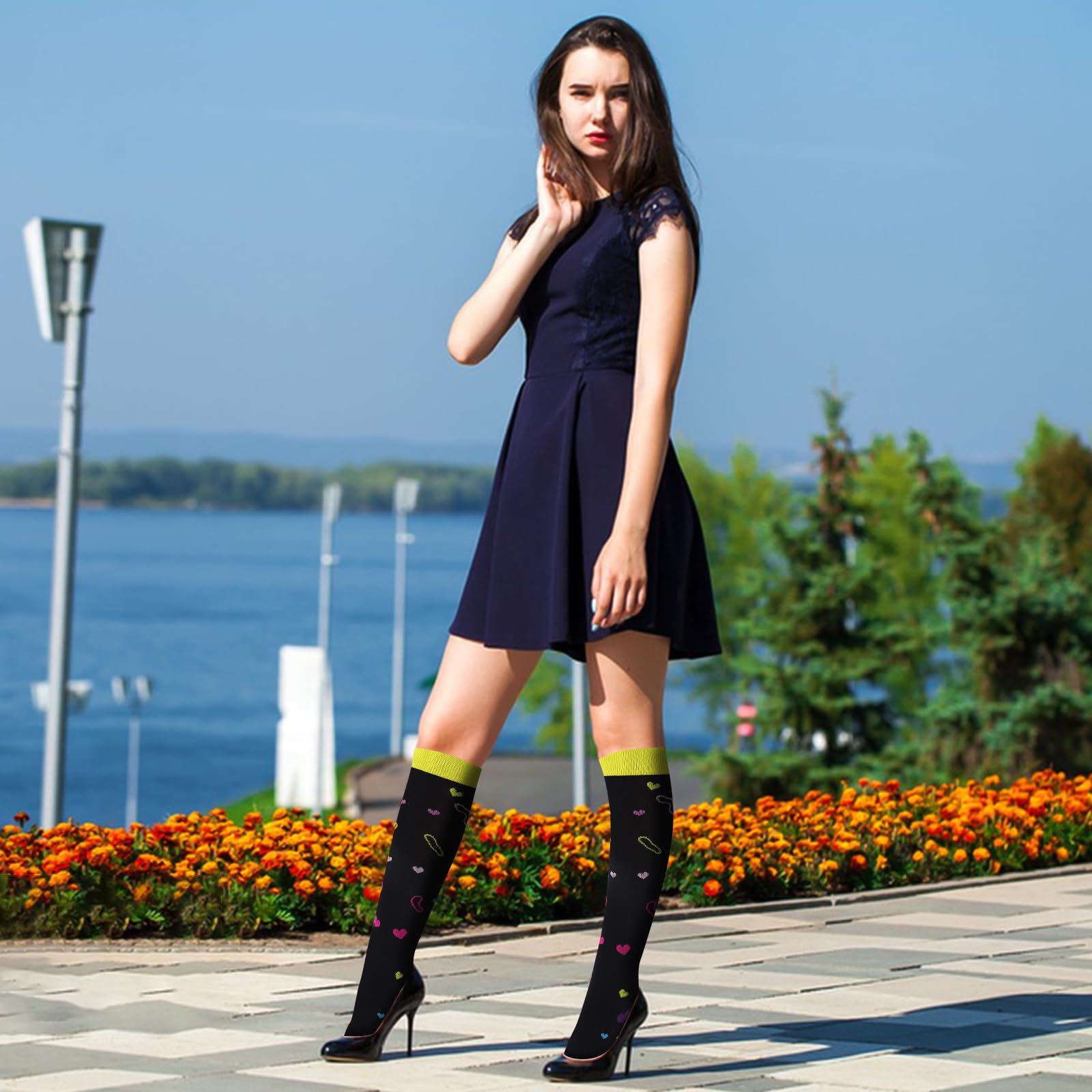 Junely Mothers Day Compression Socks for Women Valentines Day Knee High Stockings for Running Nurses Support Travel Pregnancy Gifts Pink Black