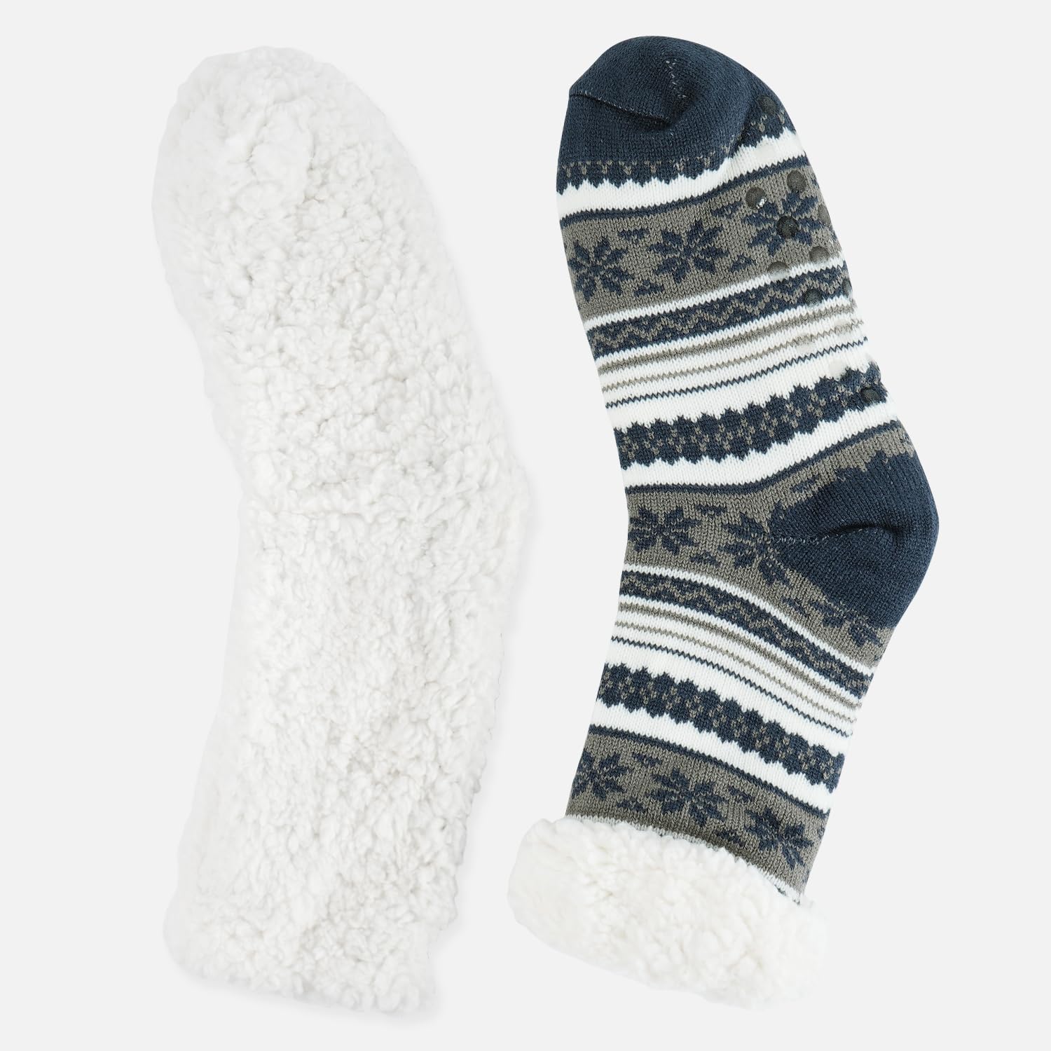 Junely Slipper Socks for Men with Grippers Fuzzy Cozy Fluffy Non Slip Warm Winter Thick Comfy Soft Fleece Cabin Socks Christmas Gifts Snowflake Blue