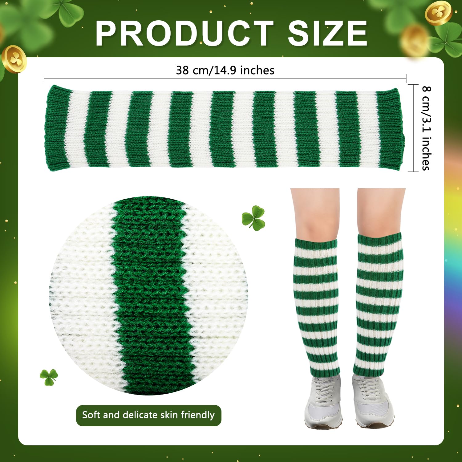 Junely St Patricks Day Leg Warmers Striped Leg Warmer Knit Legwarmers Cosplay Halloween Christmas Costume Accessories Green White