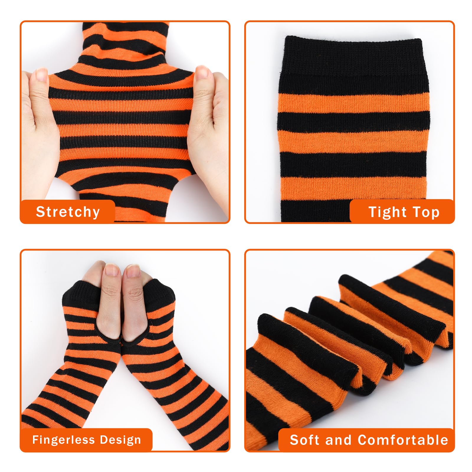 Junely Striped Thigh High Socks Over the Knee Stockings Extra Long Halloween Cosplay Costume Accessories Gifts Orange and Black