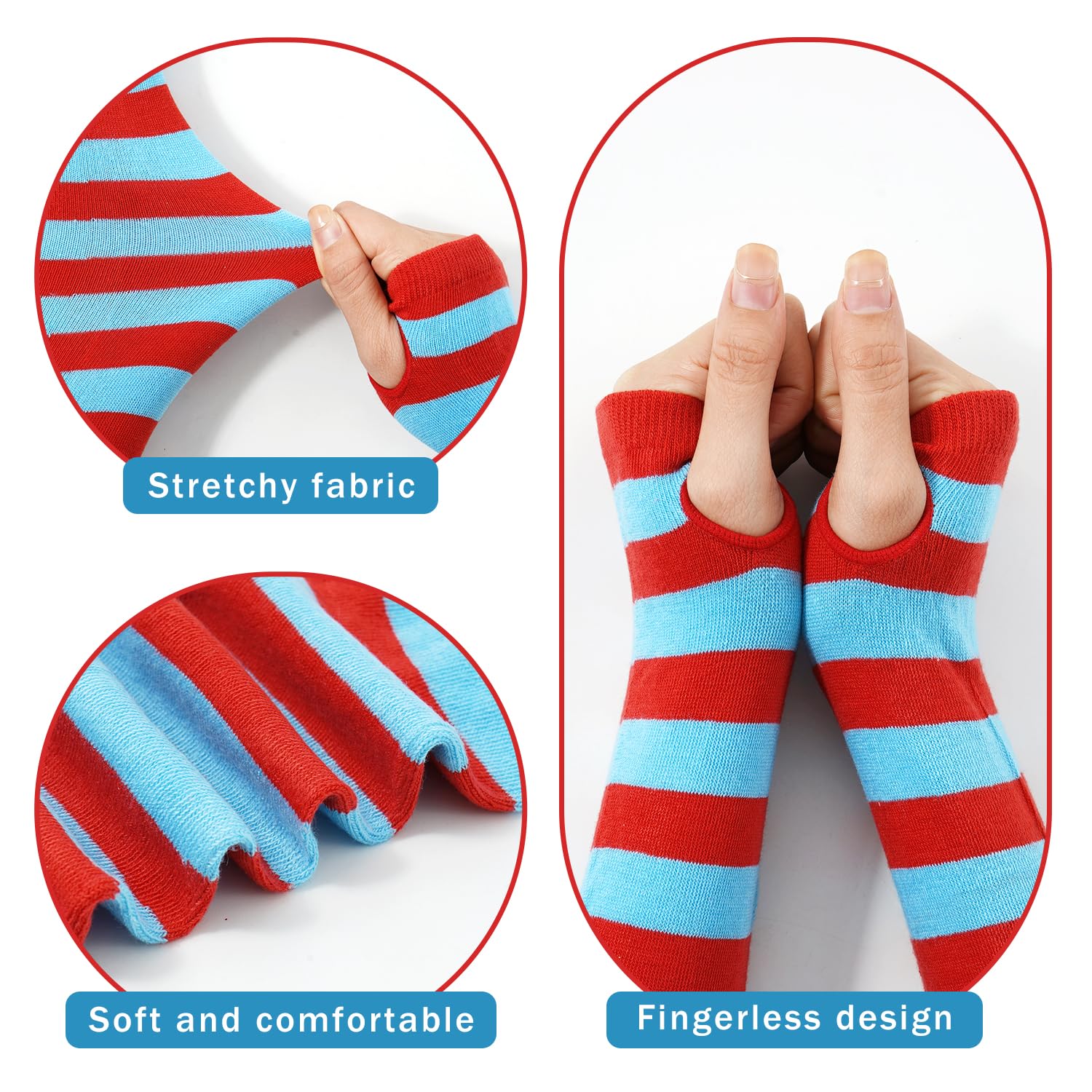 Junely Tutu for Women Adults Red and Blue Striped Thigh High Socks Fingerless Gloves Halloween Costumes Accessories