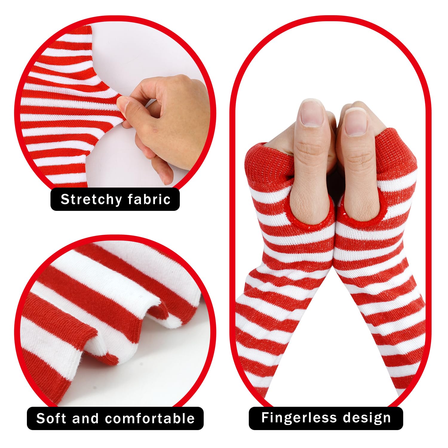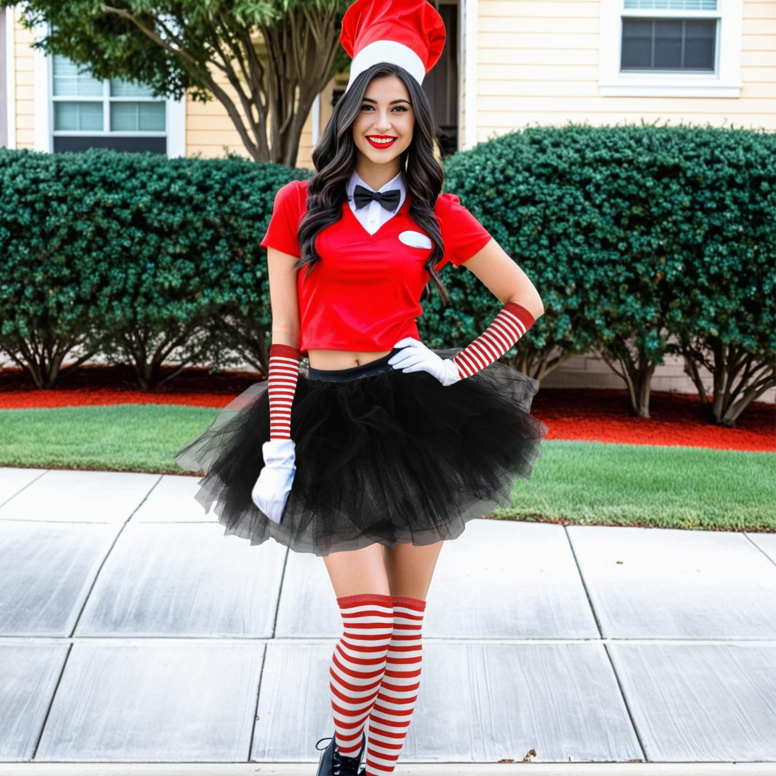Junely Tutu for Women Adults Red and White Striped Thigh High Socks Fingerless Gloves Halloween Costumes Accessories