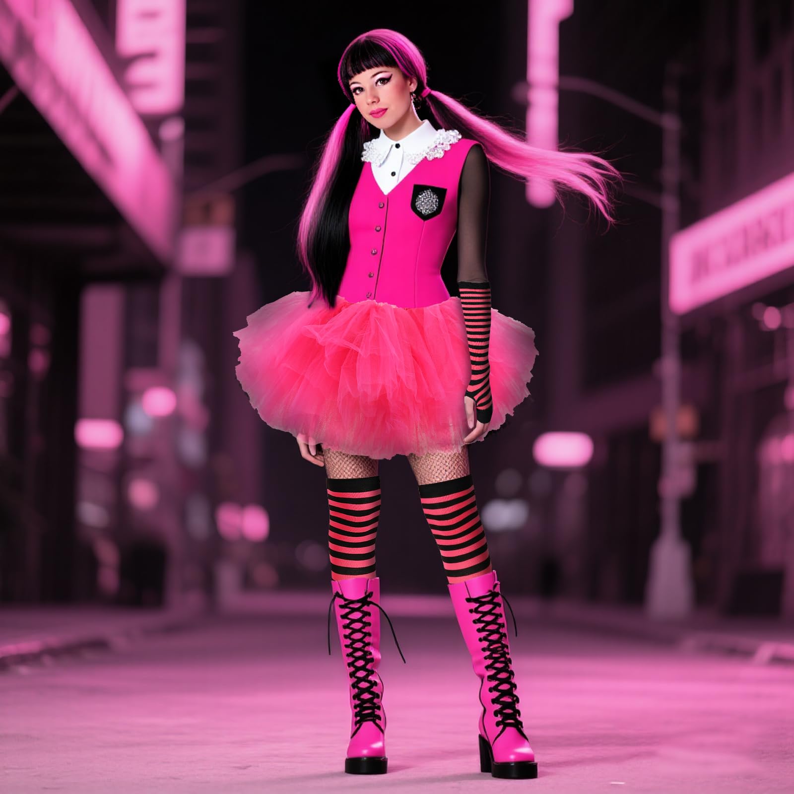 Junely Tutu for Women Adults Striped Thigh High Socks Fingerless Gloves Halloween Costumes Accessories Pink Black
