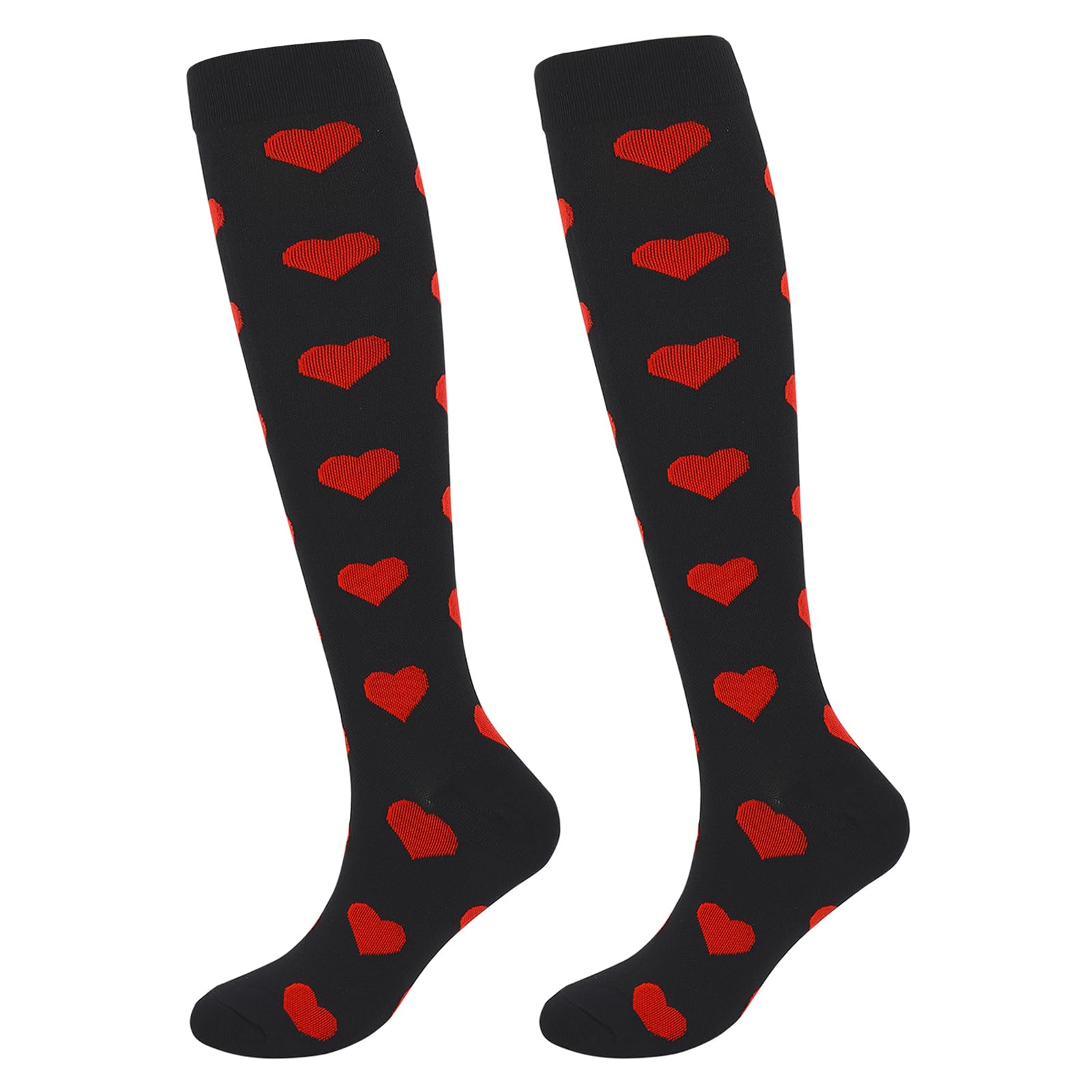 Junely Valentines Day Compression Socks for Women 20-30 mmhg Heart Knee High Socks for Valentine Running Athletic Nurses Pregnant Women Work Support Travel Flight Sports Black